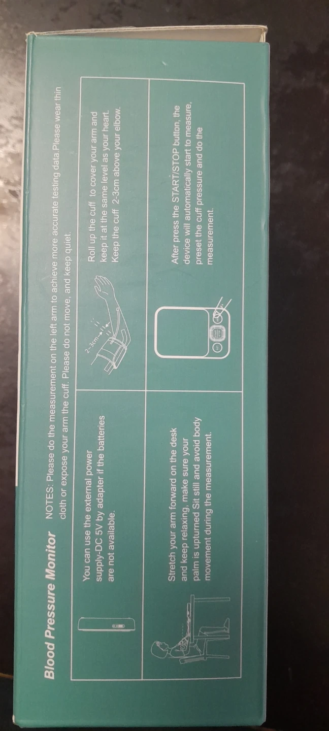 This is a RELADO blood pressure monitor, model C02W. It has a measurement range of 60-255mmHg for SYS and 40-200mmHg for DIA. The cuff circumference is adjustable from 22-40cm. This device is suitable for at-home use.