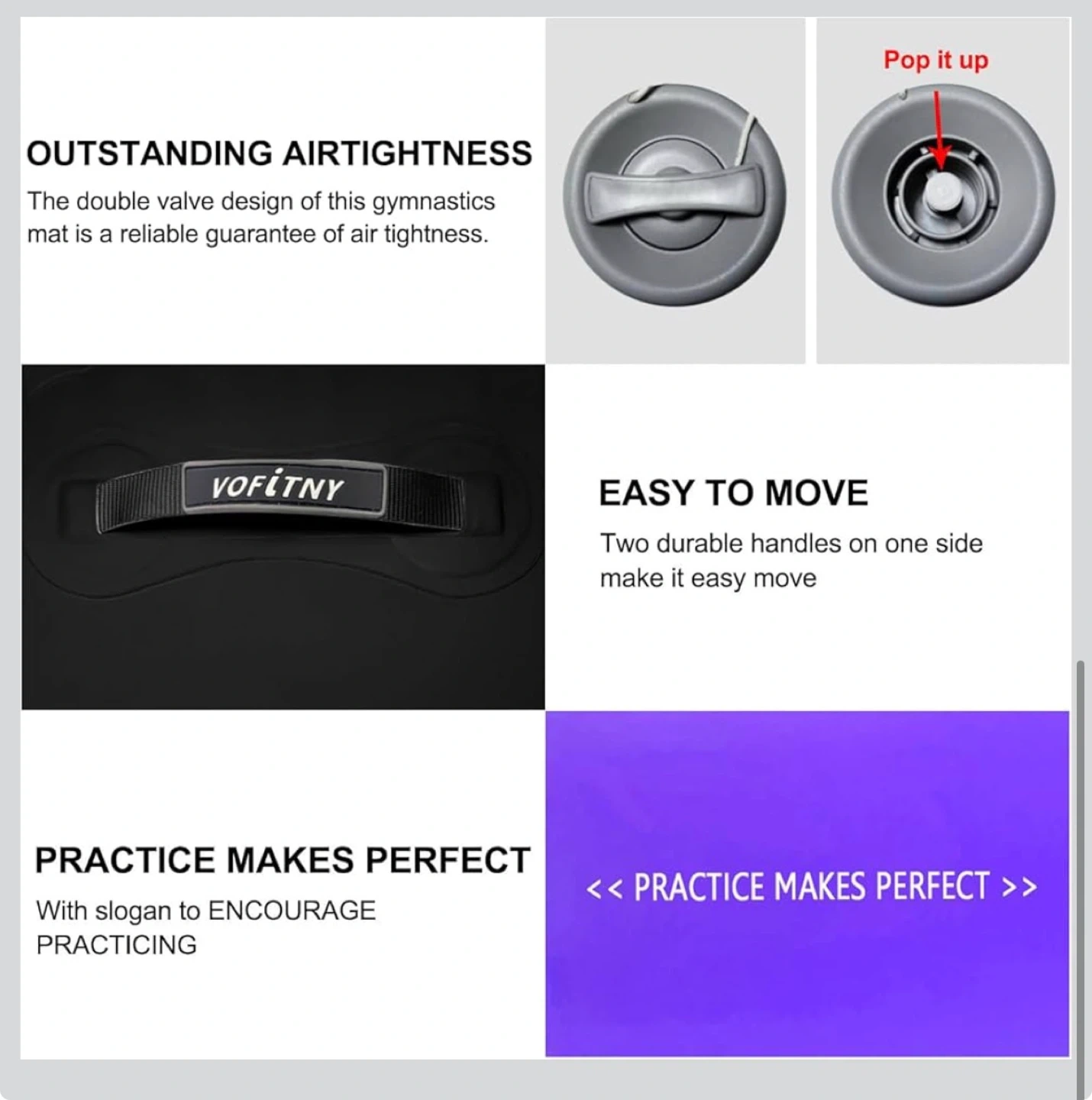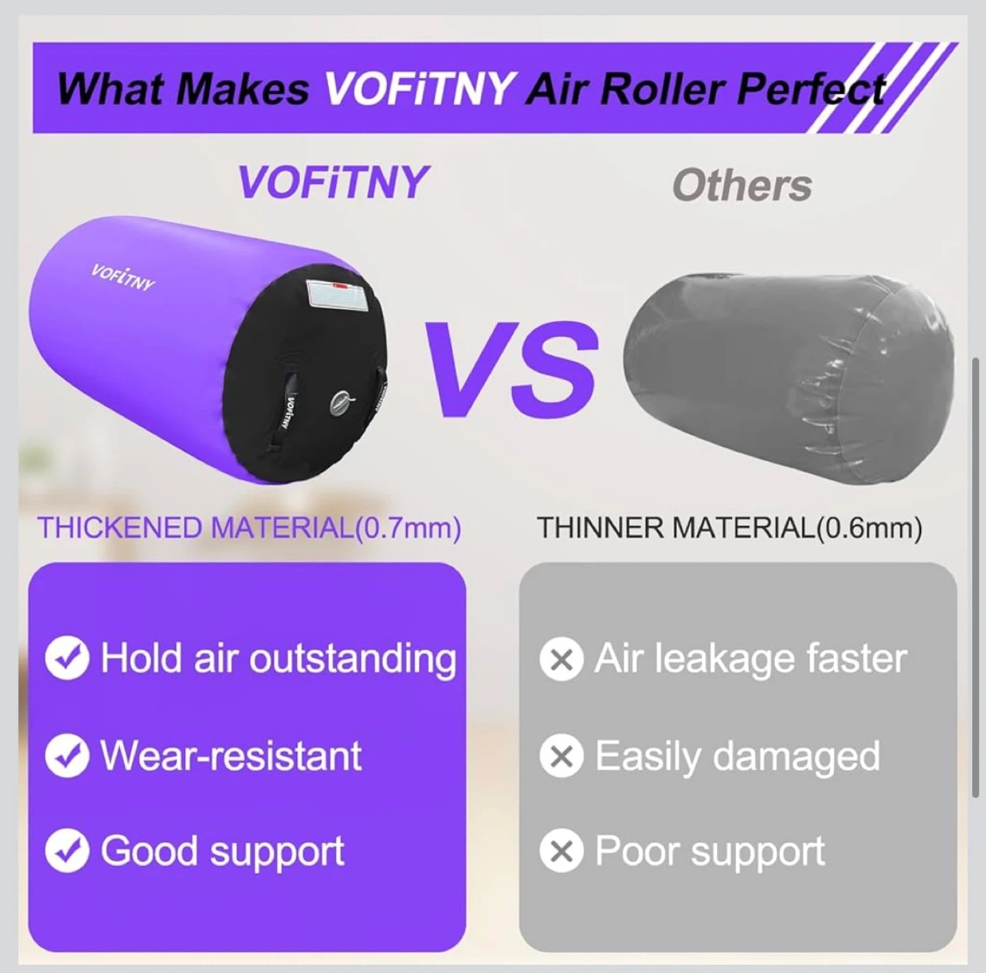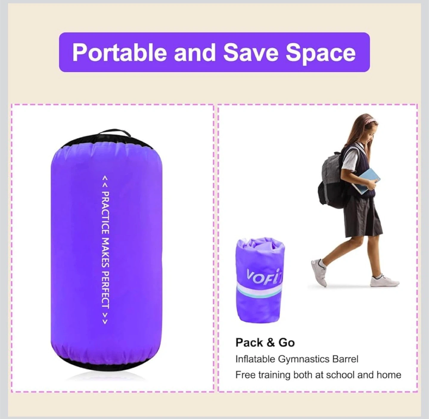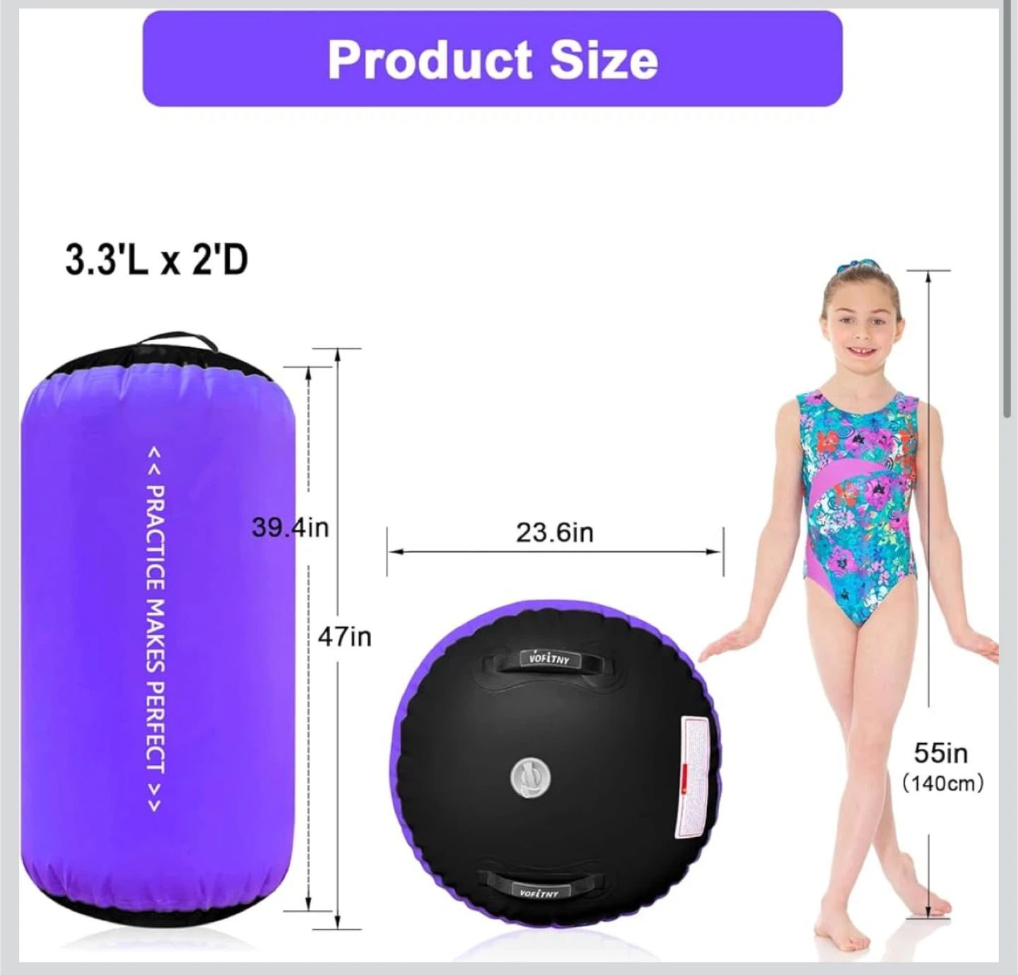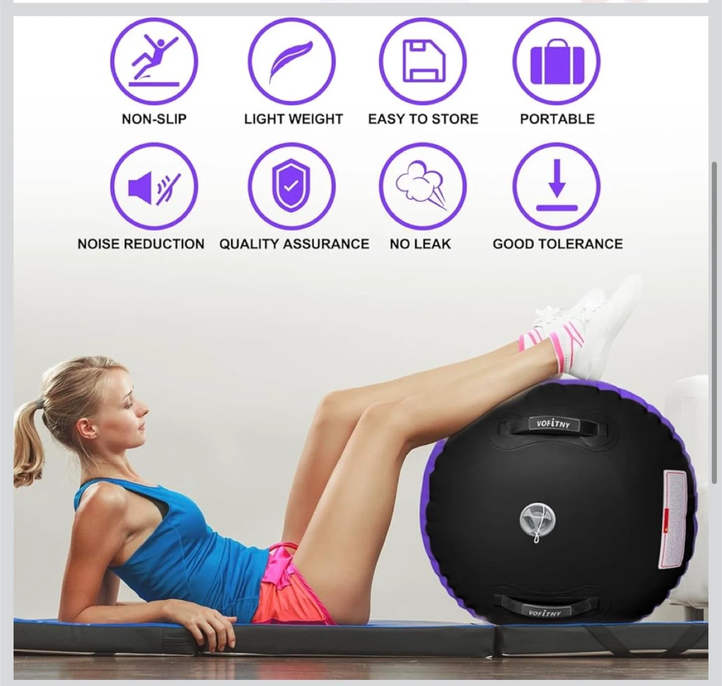 This Vofitny air barrel is perfect for gymnastics training and home use. It's durable, non-slip, and lightweight for easy portability. Noise reduction and no-leak features ensure a great experience.