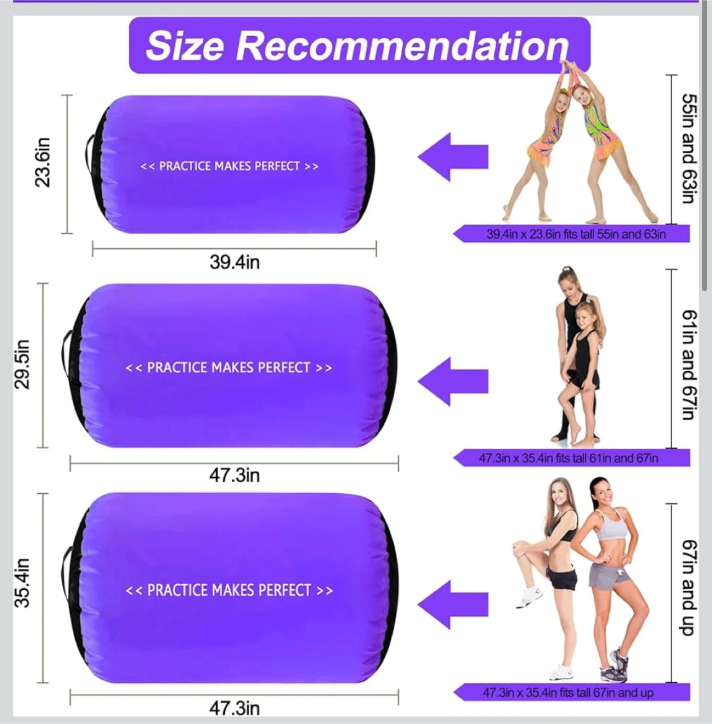 Vofitny Purple Inflatable Gymnastics Air Barrel Roller 3.3' x 2'