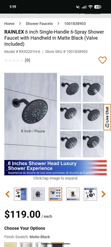 Brand new Rainlex® Shower Faucet Kit in Matte Black with Rough-In Valve. Still in the original box. Home Depot price is $120 CAD, asking only $45 CAD. Free delivery within Niagara Falls.