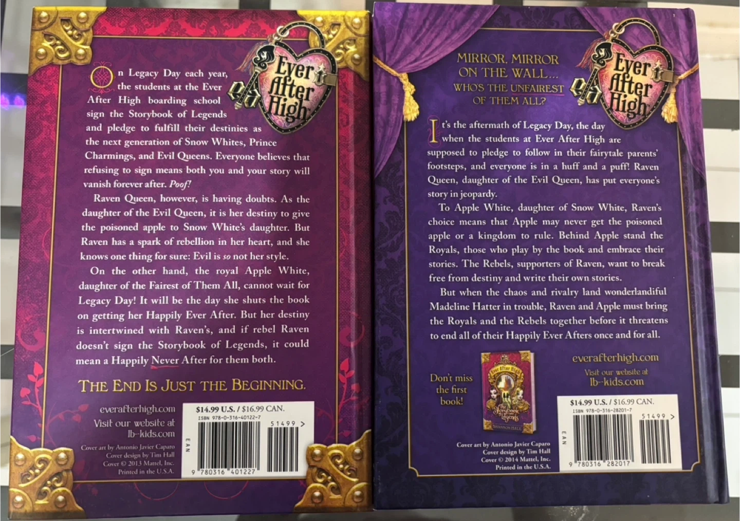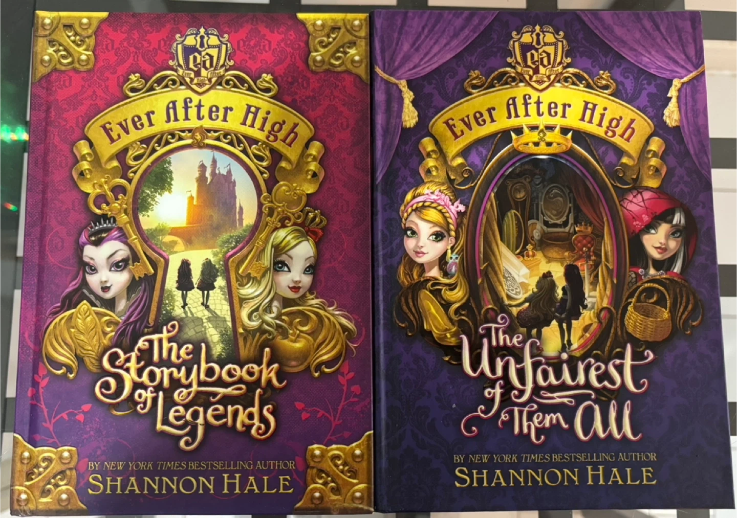 Two Ever After High books by Shannon Hale. "The Storybook of Legends" and "The Unfairest of Them All" are included. Both books are softcover.