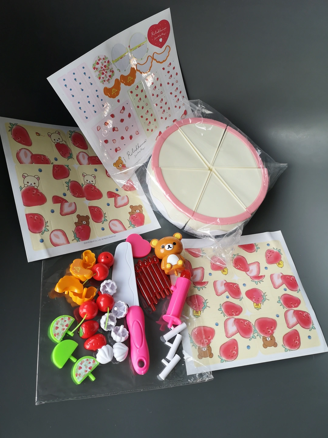 Selling a cute Rilakkuma Strawberry Party cake toy set! It comes with all the pieces, including the cake slices, toppings, batteries powered flashing candle and adorable Rilakkuma figure. Perfect for imaginative play and Rilakkuma fans. Cute pop up in birthday party!