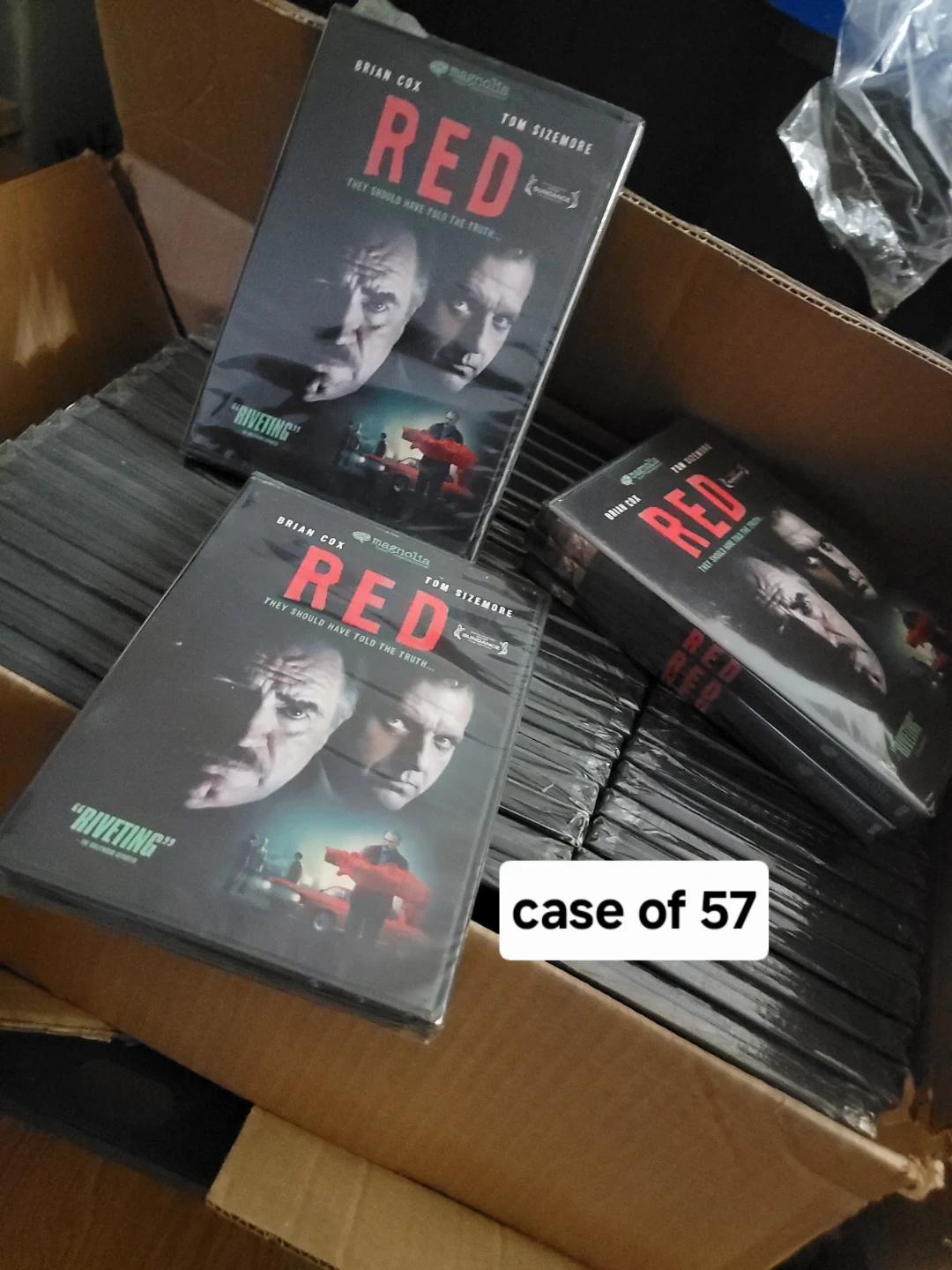 This is a DVD of the movie RED. It stars Brian Cox and Tom Sizemore. The movie is described as "riveting". All movies are new and sealed in original packaging