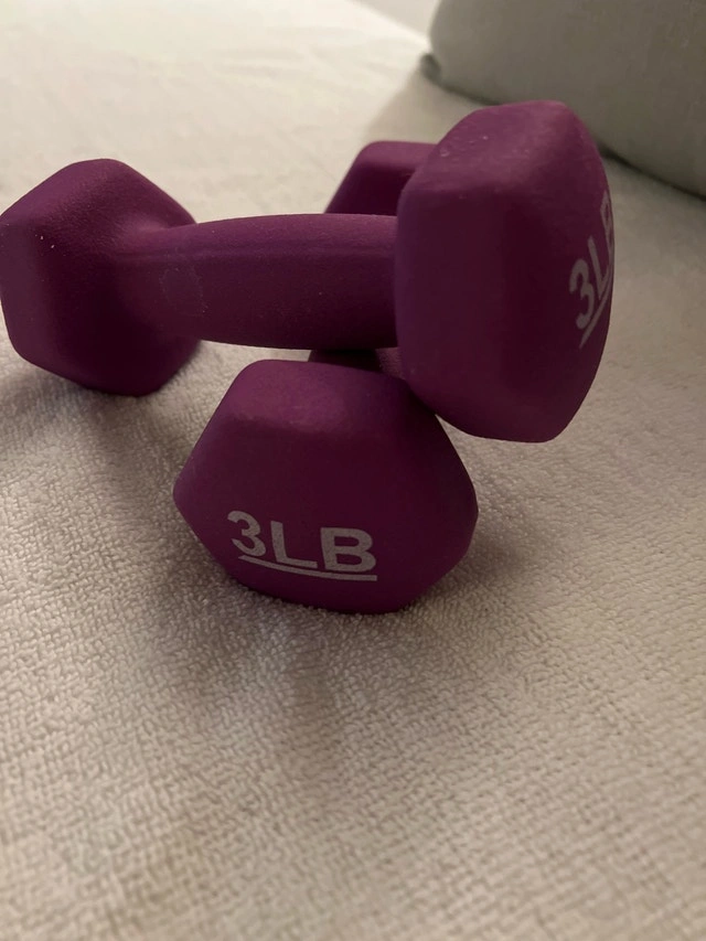 Get ready to pump some iron with these 3LB dumbbells! They are perfect for adding a little extra resistance to your workouts and come in a stylish purple colour. These dumbbells have been used but are still in great condition, ready to help you reach your fitness goals. Feel free to message if you have any questions!