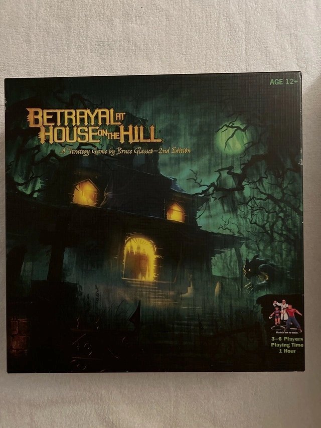 Delve into the eerie unknown with Betrayal at House on the Hill, a strategy game for 3-6 players, offering an immersive one-hour playing experience. This is the 2nd edition by Bruce Glassco. This board game is in used, but good condition. Players: 3-6, Playing Time: 1 Hour, Edition: 2nd. Unleash your inner detective and prepare for a thrilling adventure filled with mystery and suspense! If the ad is still up, then yes, it's available for purchase. Happy hauntings!