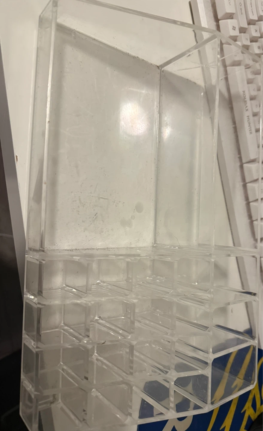 This clear acrylic organizer has multiple compartments for makeup and accessories. It's perfect for keeping your vanity tidy. The clear design lets you easily see your products!
