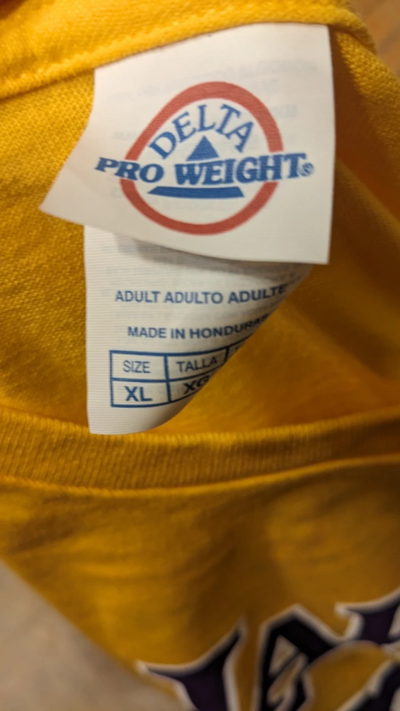 Los Angeles Lakers logo on the front and "Dončić" with the number "77" on the back. It's a size XL and made of cotton. Perfect for any basketball fan!