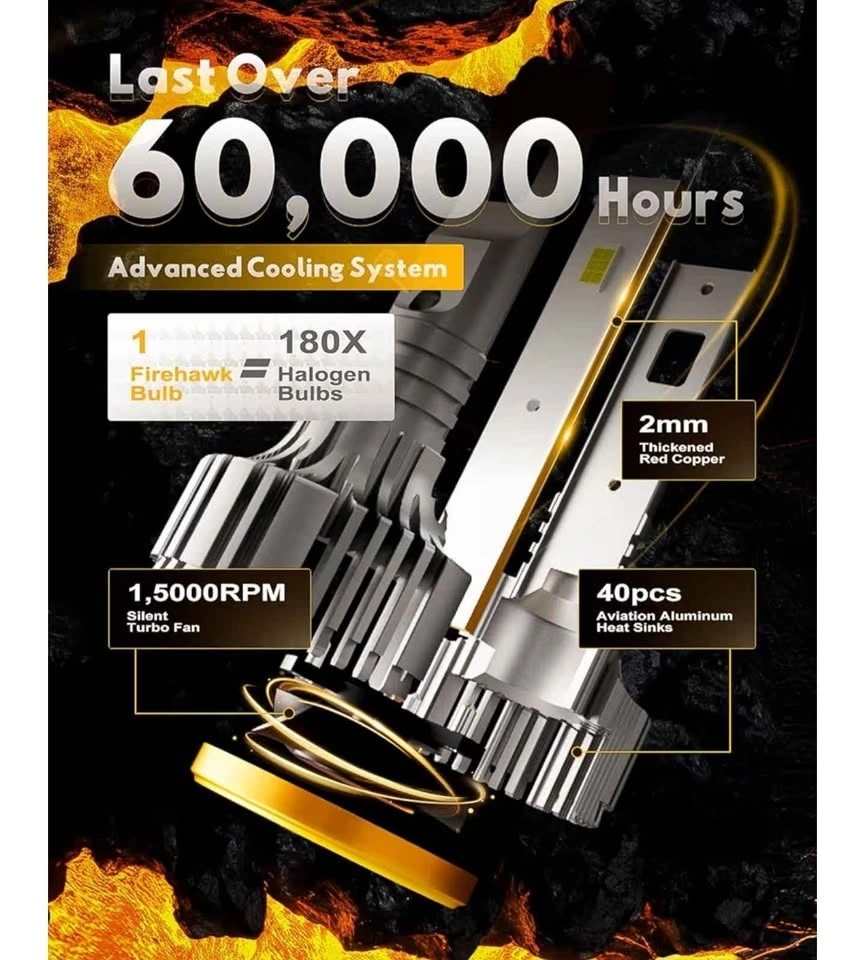 New in a box. These Firehawk H11/H8/H9/H16 LED Headlight Bulbs offer 60000LM and are 800% brighter than standard halogen bulbs, with a 6000K cool white light. They are a plug-and-play conversion kit, model 2026 Ultra, sold as a pack of 2. They were $89 on Amazon. I can deliver within Barrie and Innisfil. Installation is extra depending on your vehicle.