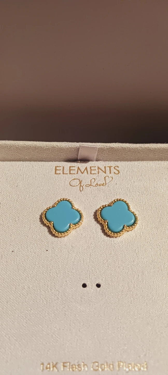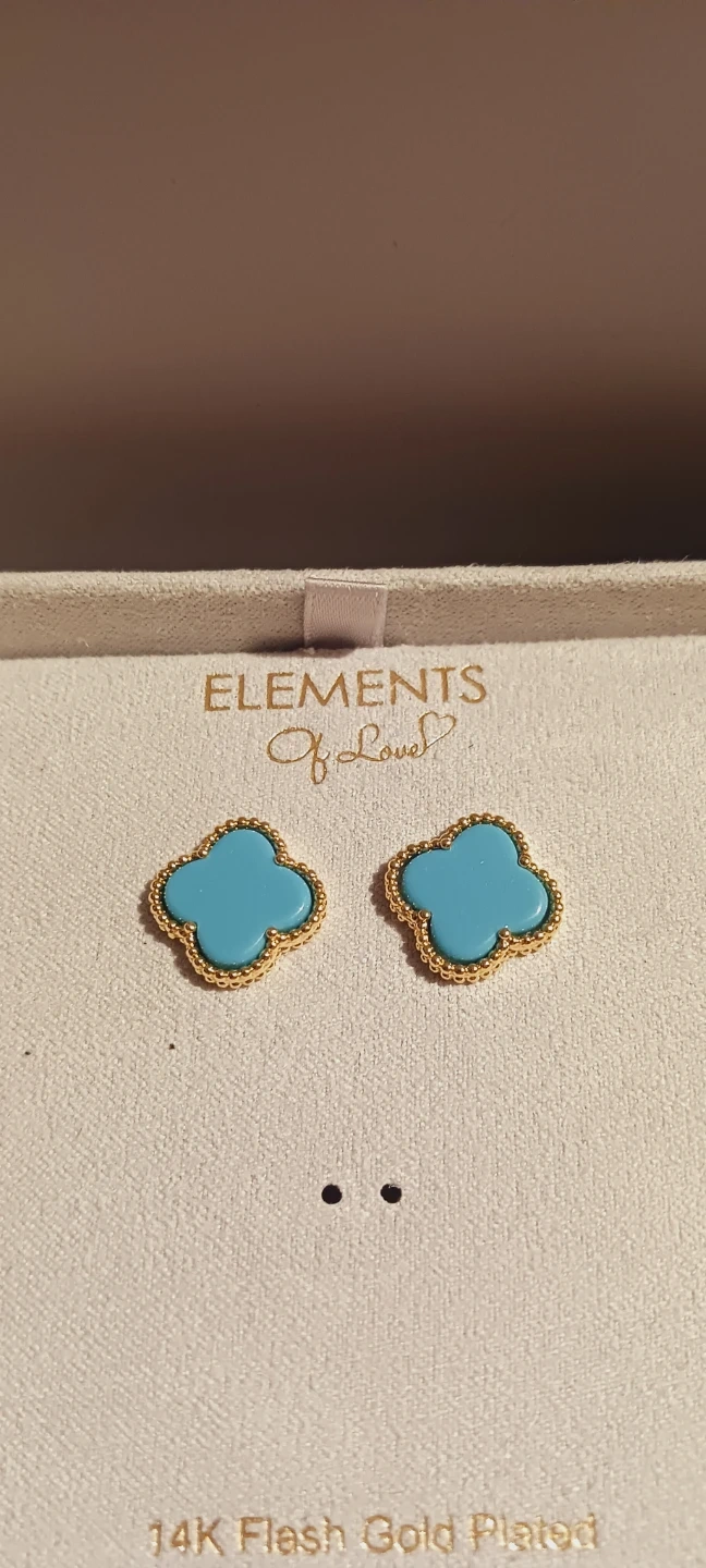 π βοΈ clover-shaped earrings with a turquoise inlay. They feature 14K flash gold plating. Perfect for adding a pop of color to any outfit! New !! ALL MY PRICES ARE NEGOTIABLE !! NIB !! NEW IN ORIGINAL BOX !!