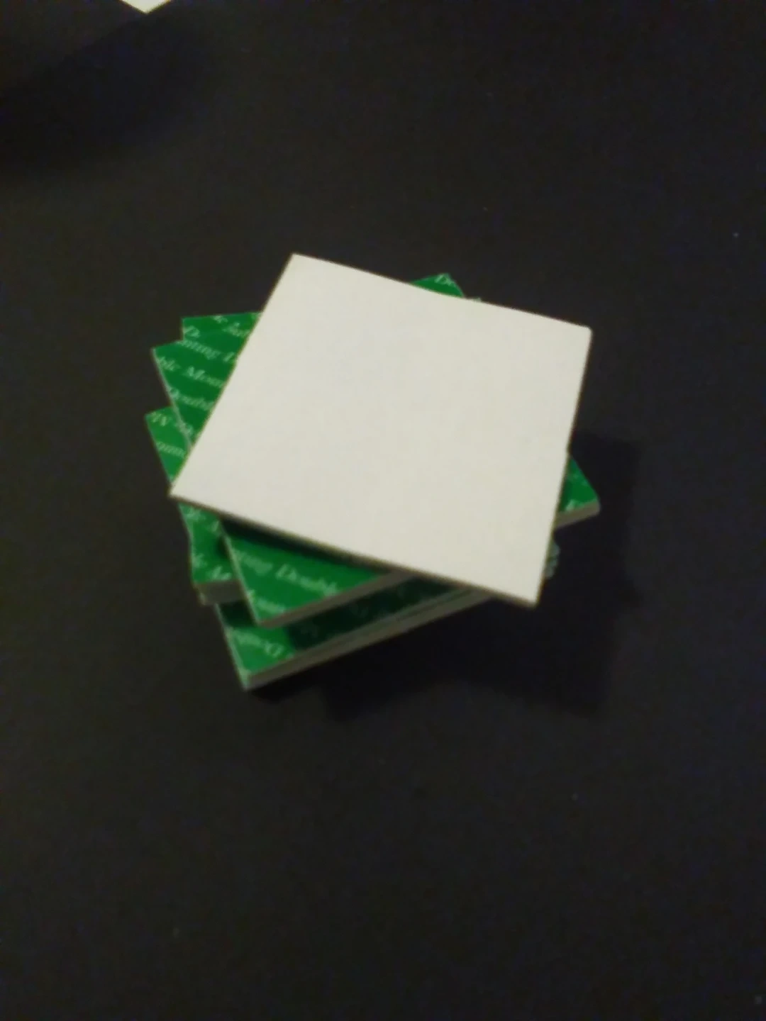 Leftover pack of double sided mounting tape pads. Good for various mounting needs. Each square (5cmx5cm) is broken up into 4 smaller squares(2.5cmx2.5cm). Just under 2mm thick