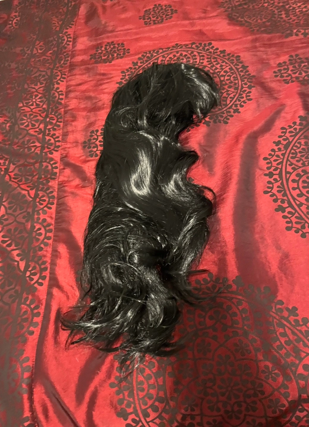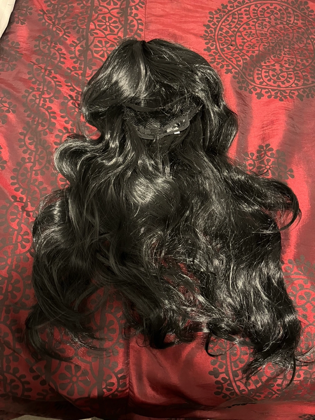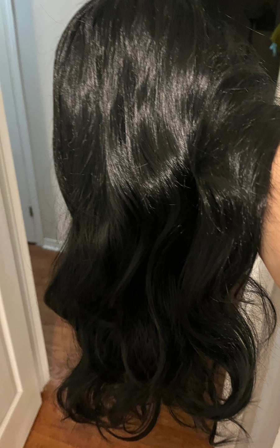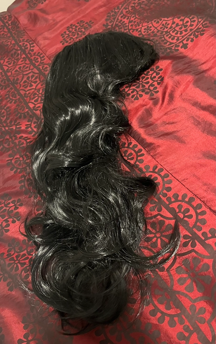 Brand new black wavy synthetic wig with full bangs/fringe. Long length with soft S-waves — super flattering and easy to wear. Never worn