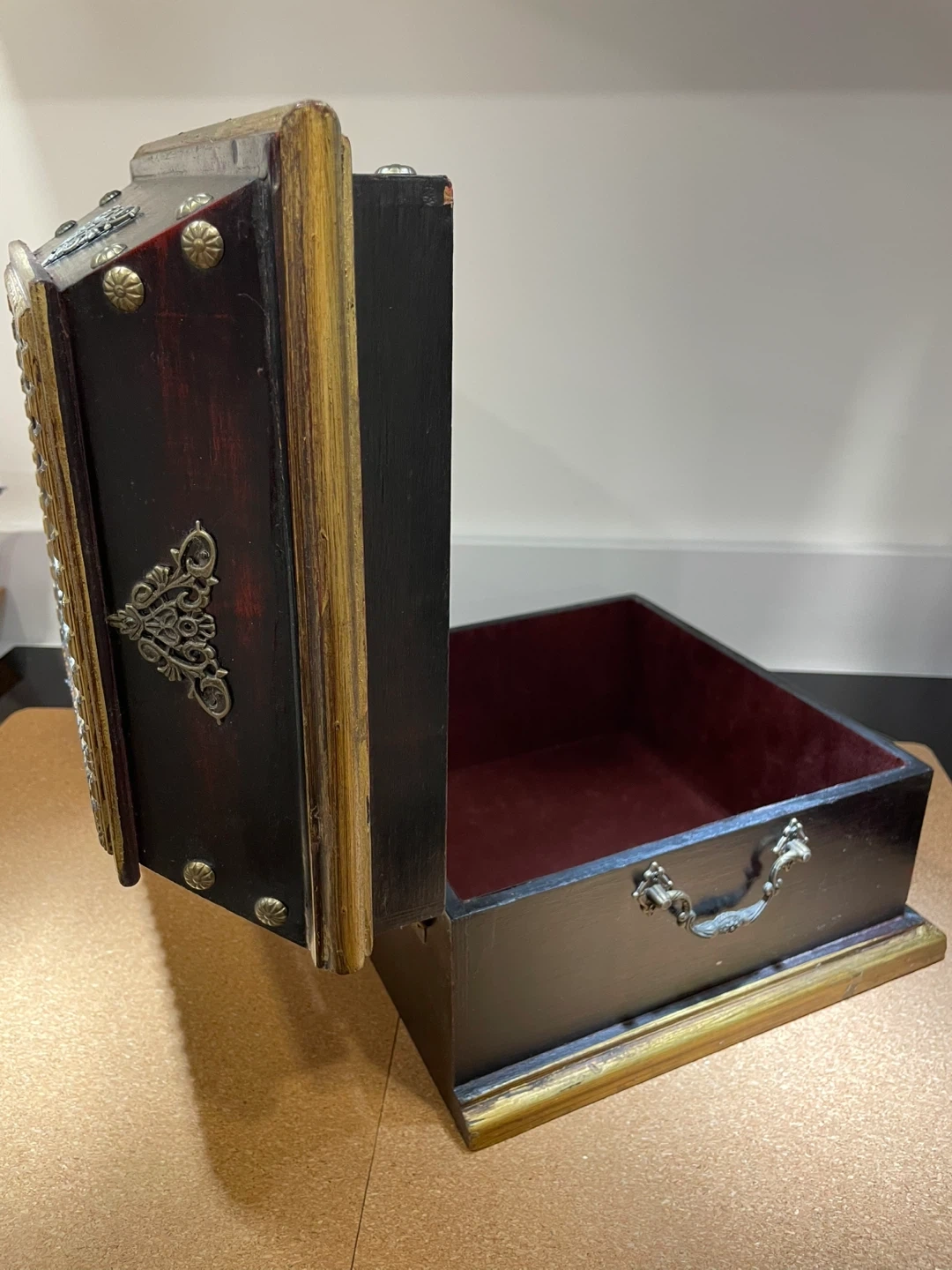 Decorative Wooden Trinket Box with Ornate Metal Accents