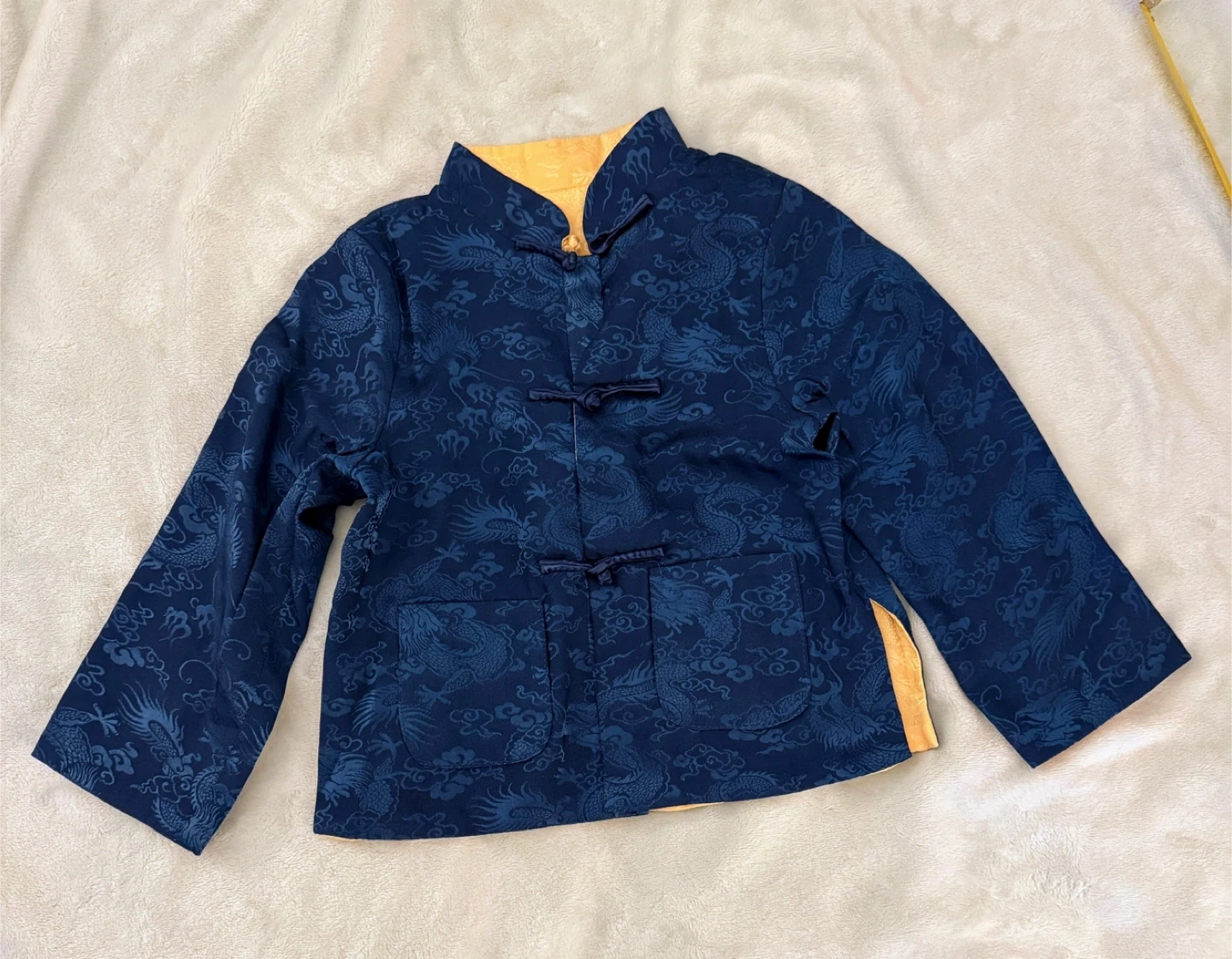 Chinese Dragon Brocade Jacket - Reversible Blue/Yellow
