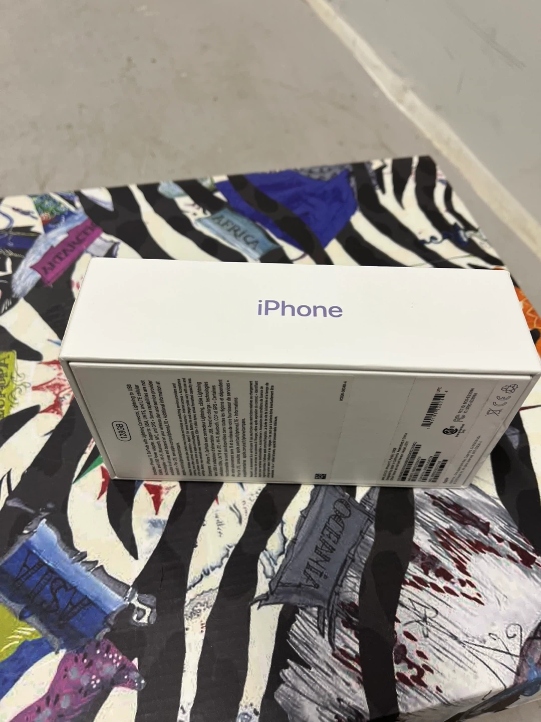 Empty BoxApple iPhone 11 in purple with 128GB storage. It includes a Lightning Connector, Lightning to USB Cable, and USB Power Adapter. Supports Wi-Fi, Bluetooth, NFC, and GPS.