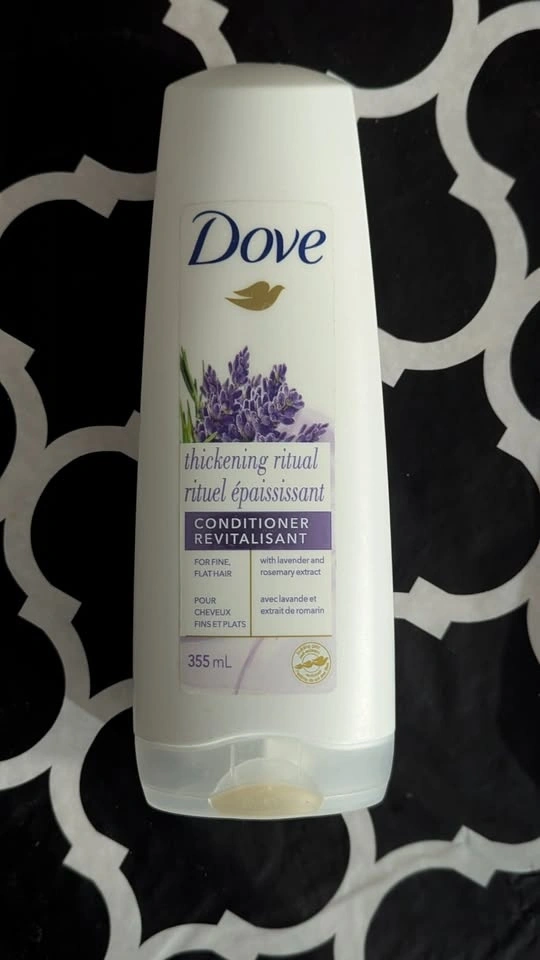 Dove Thickening Ritual Conditioner – 355mL - Brand new, never used. Infused with lavender & rosemary extract. For fine, flat hair – adds volume & softness. Price: $8 CAD