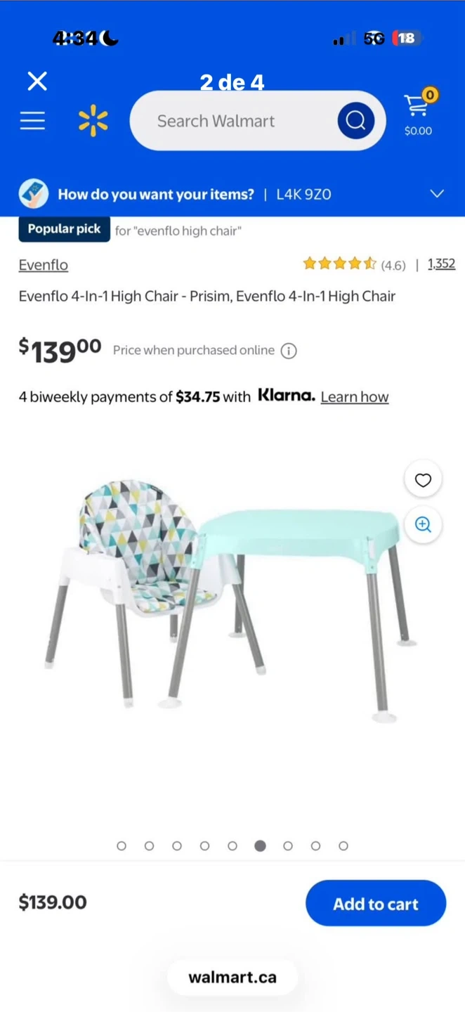 This is an Evenflo 4-in-1 high chair with a teal seat and a grey frame. It features a patterned seat cushion. It's designed for multiple stages of use as your child grows.