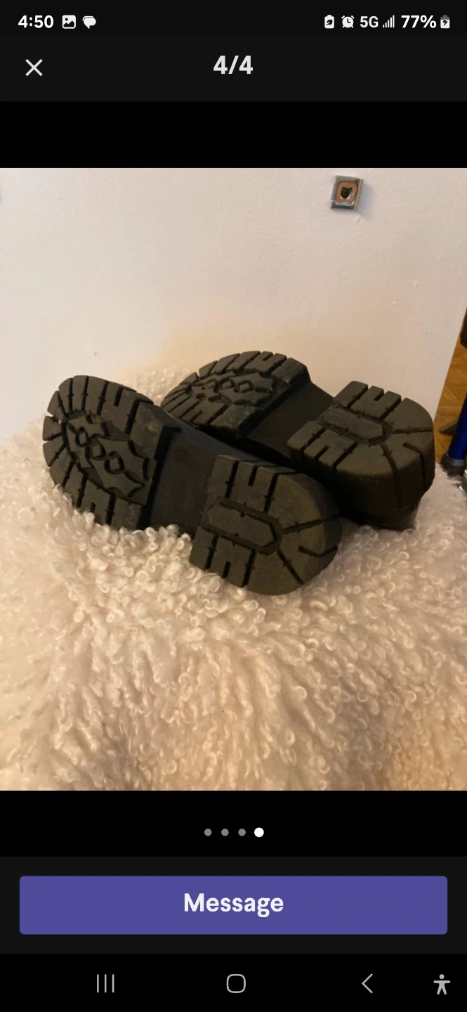 These are black Steve Madden loafers with a chunky sole and gold hardware. They're made of leather. Good for casual wear or dressing up an outfit!