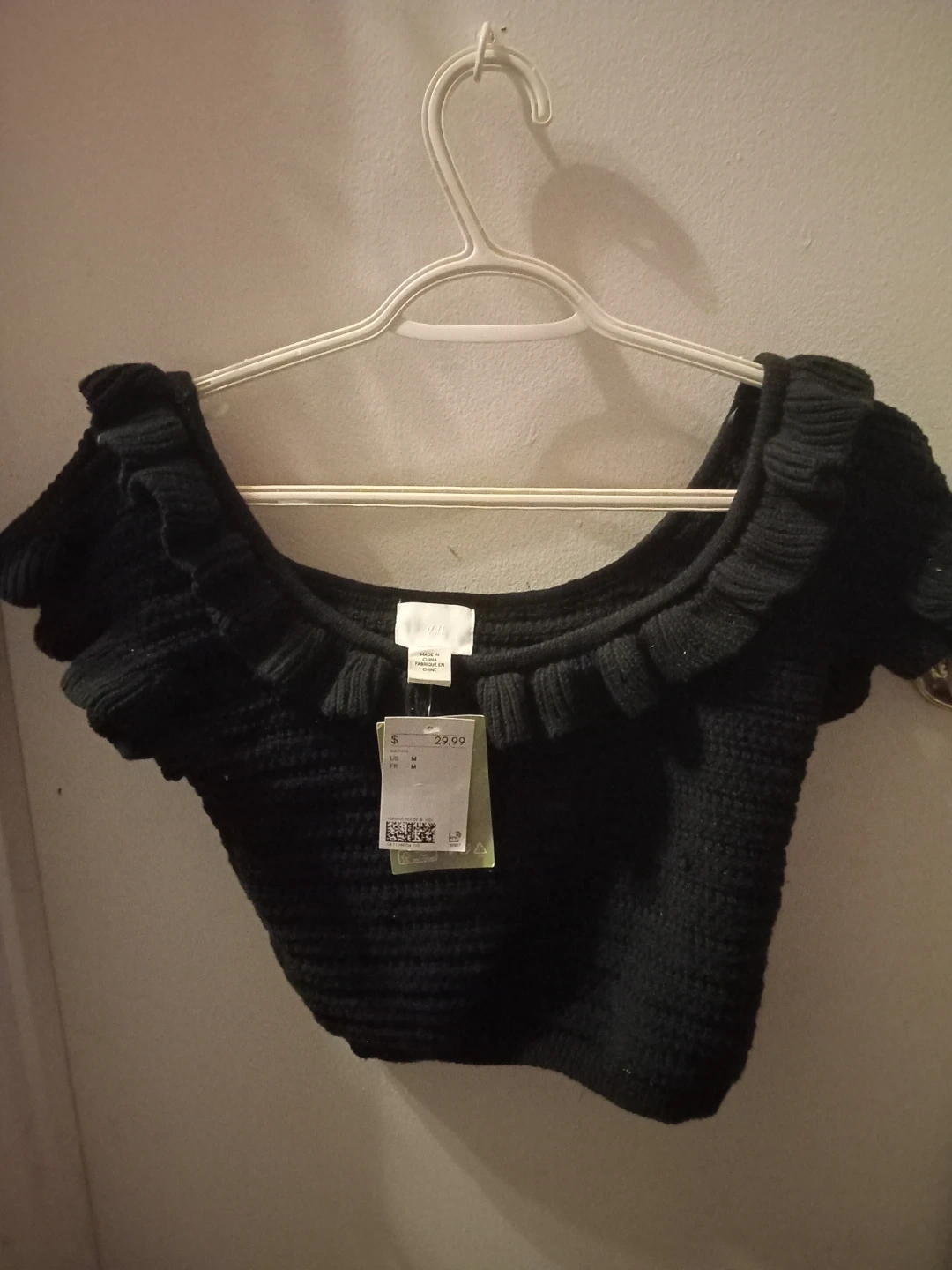 Selling a brand new H&M black knit crop top! It's a size M and still has the original tag attached. Originally bought for $29.99. Perfect for a night out or a casual day!