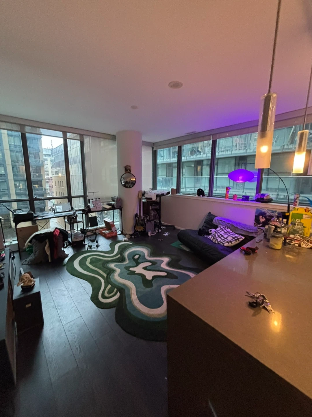 One bed room one bath, shared living room and kitchen. In unit laundry. Gym, pool and party rooms included with building.