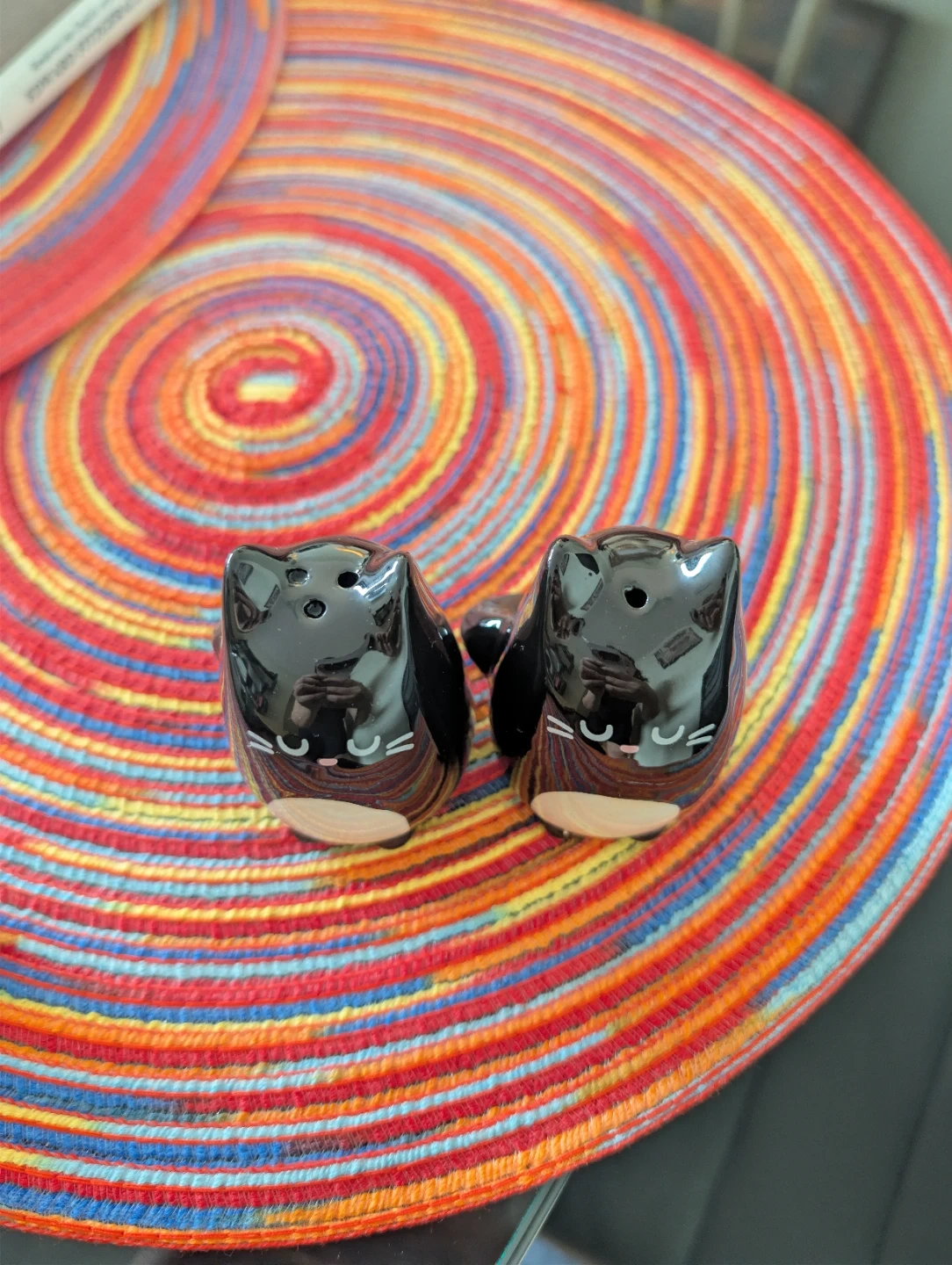 Cutest black cat shaped ceramic salt and pepper shakers. They're a fun addition to any kitchen table or you can just use them as decorations!