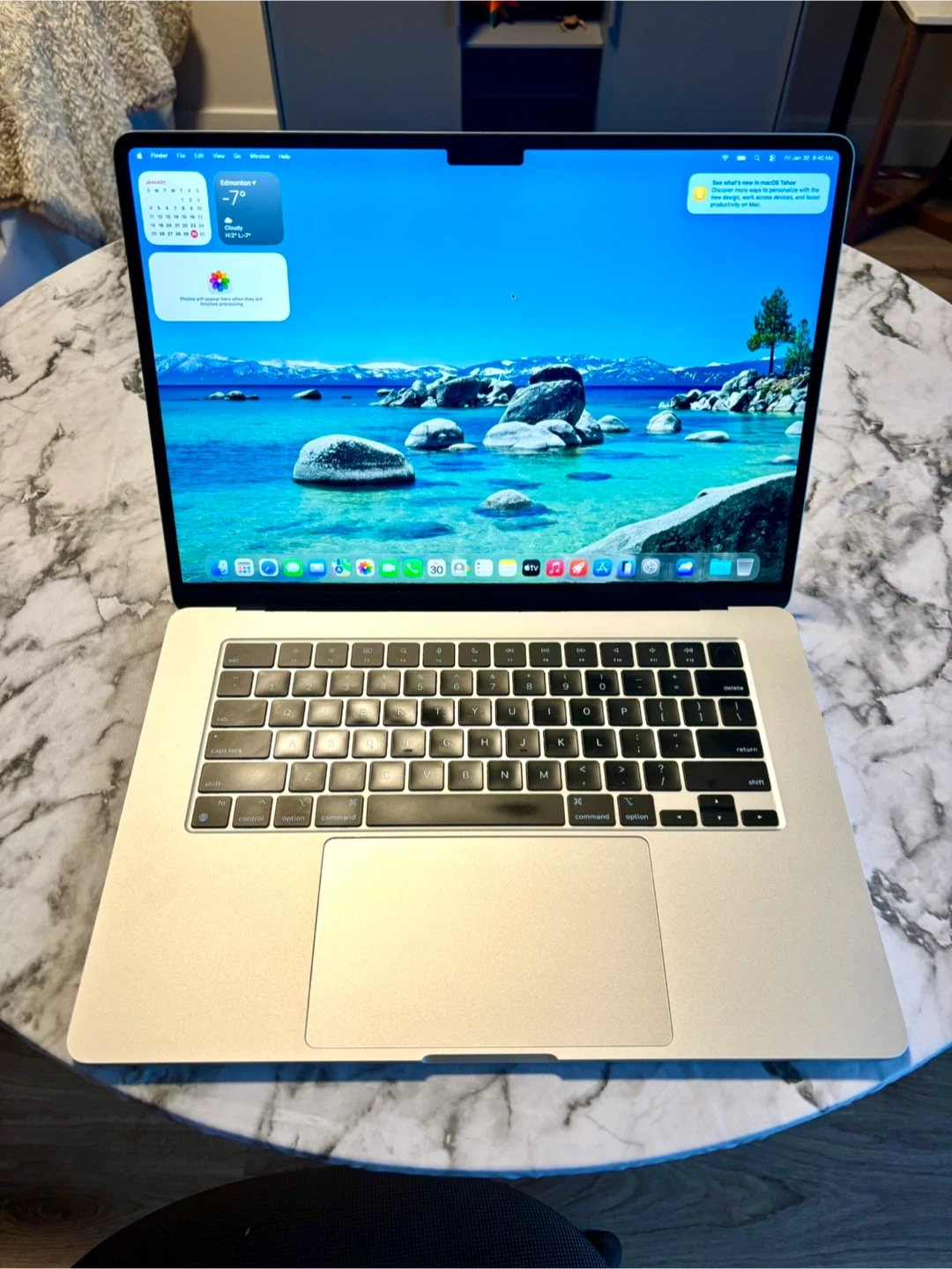 Apple MacBook Air M3 15” 256 gig, 2024, used very rarely like new! Battery at 97%. Not a mark on this unit. Comes with a new padded carrying bag with storage & charger. Text if interested: Tyler 780-707-3927