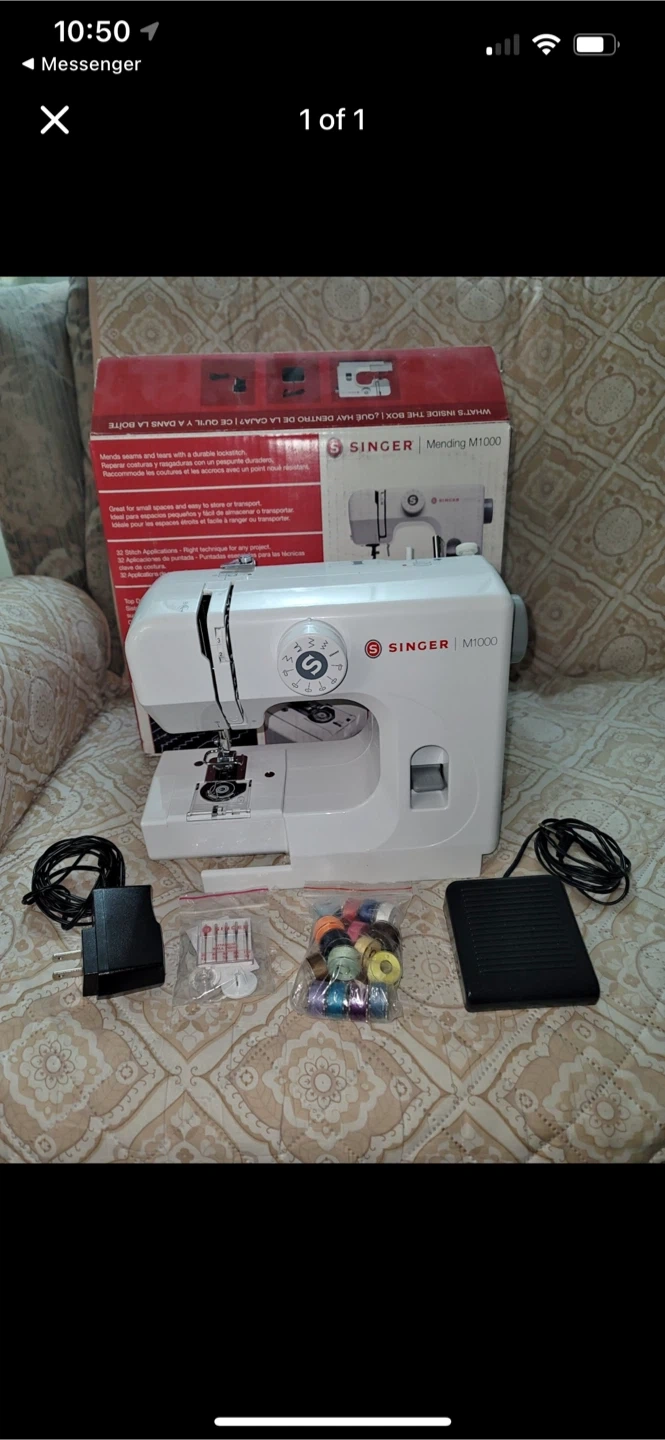 This Singer Mending M1000 sewing machine is great for small spaces and easy to store or transport. It has 32 stitch applications, offering the right technique for any project. Comes with a foot pedal, power cord, needles, and a selection of thread spools.