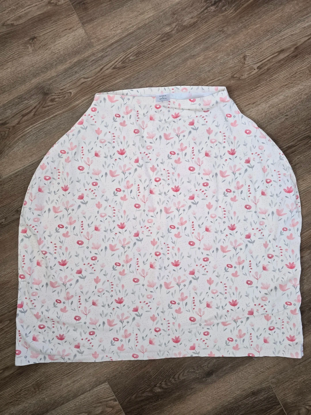 Two footed sleepers, one pink striped and one white with grey elephants sized newborn with double zipper. Also includes a never used Aden + Anais floral print nursing/carseat cover. All items are soft cotton.