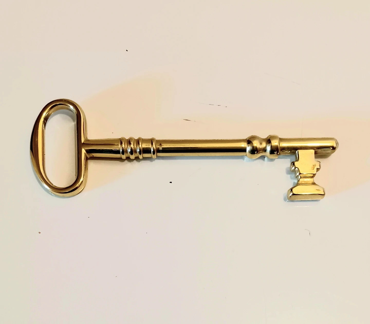 Add a touch of Antique charm to your decor with this Elegant 6-inch Gold-plated skeleton key. Its intricate design and gleaming finish make it a unique decorative piece.