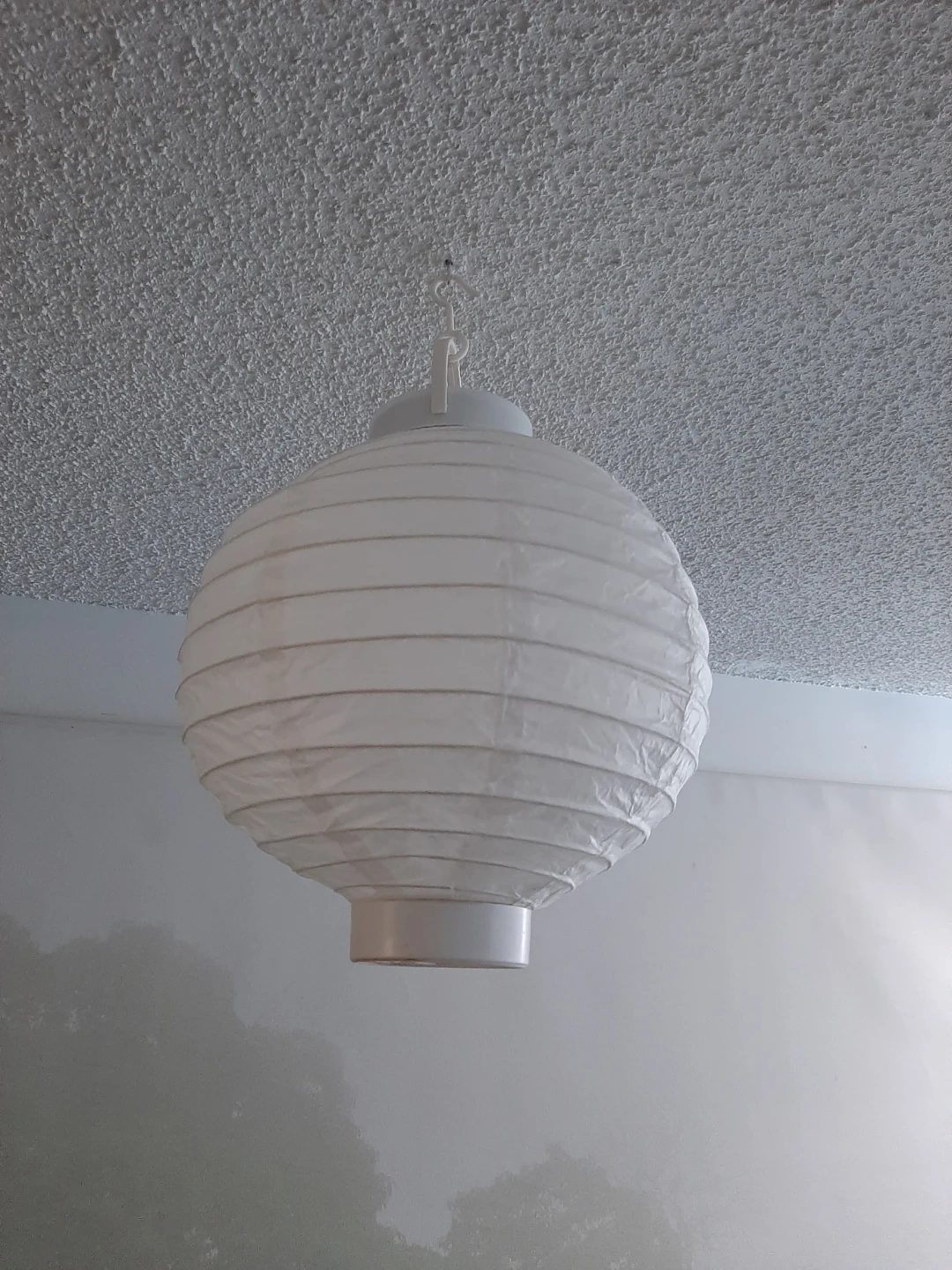 It's a white paper lantern decoration for the ceiling. Made of paper and plastic components.