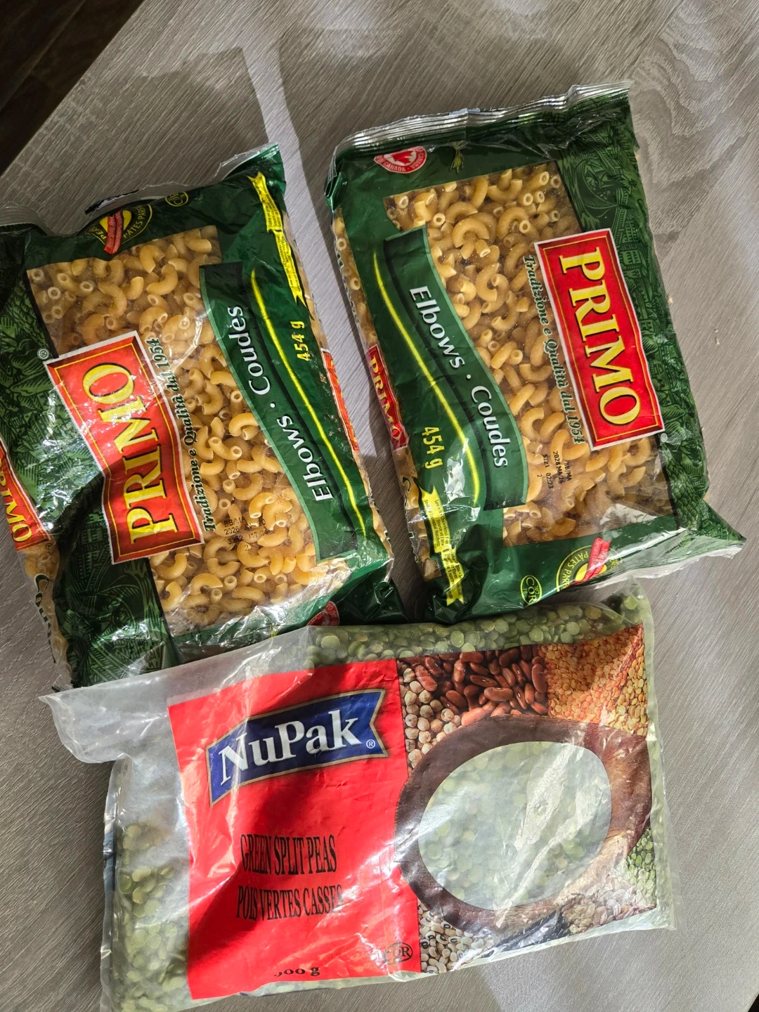 Primo Elbows Macaroni & NuPak Green Split Peas