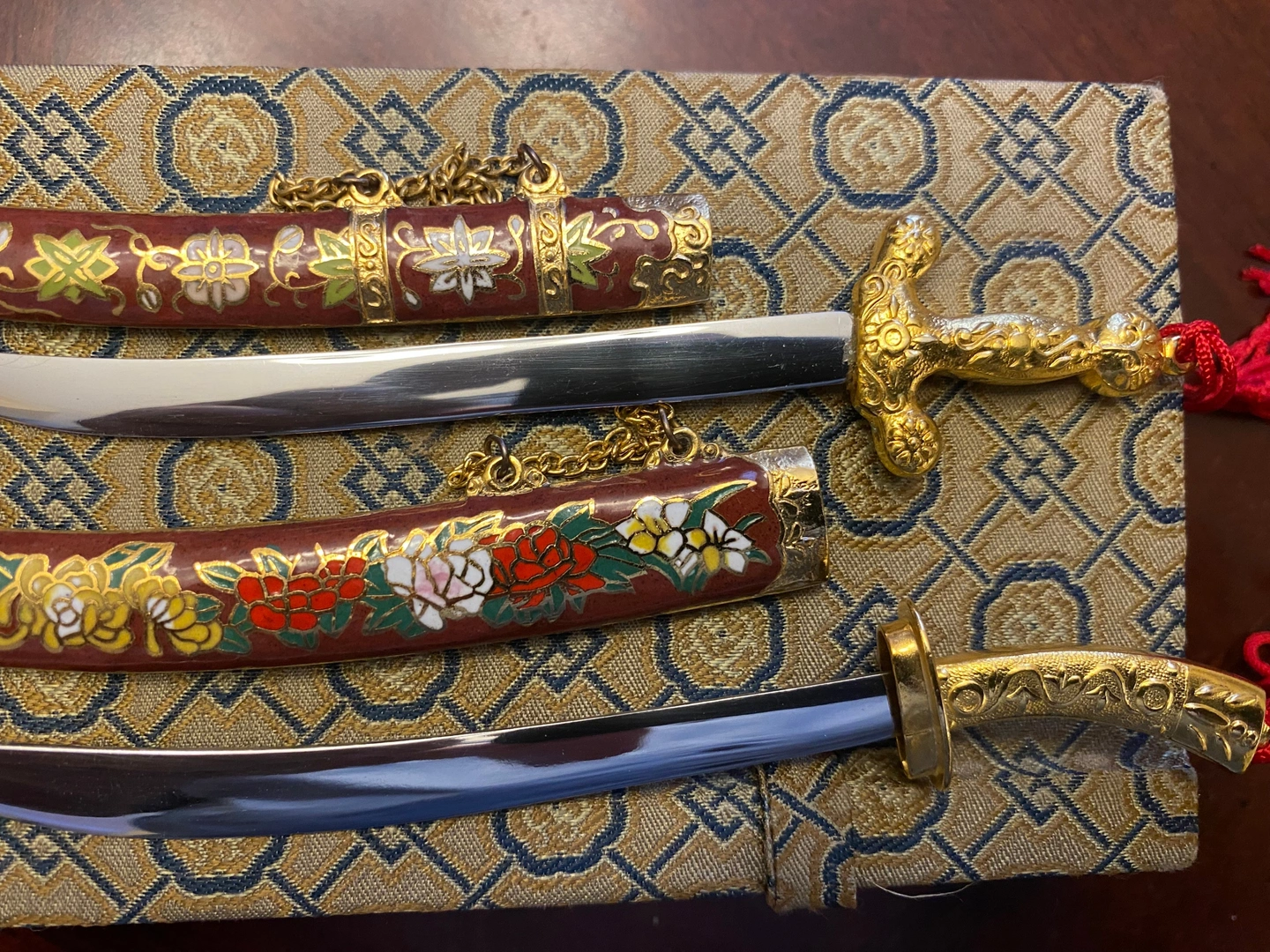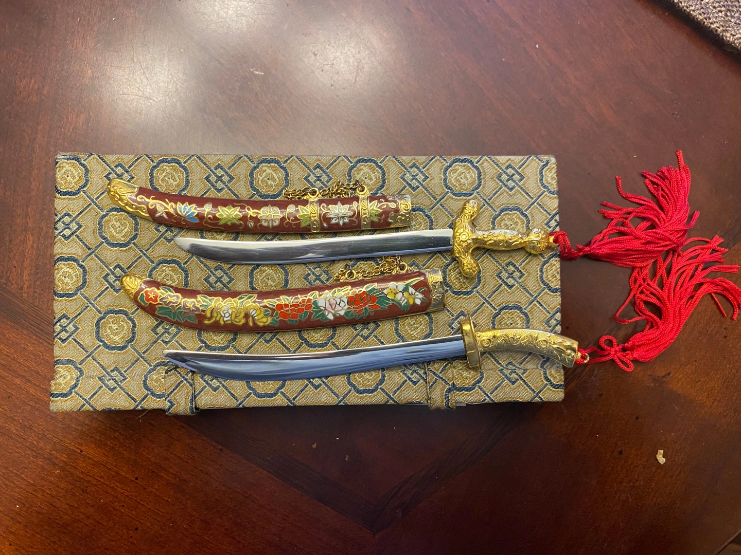 Vintage Chinese Cloisonne Mini Sword Set