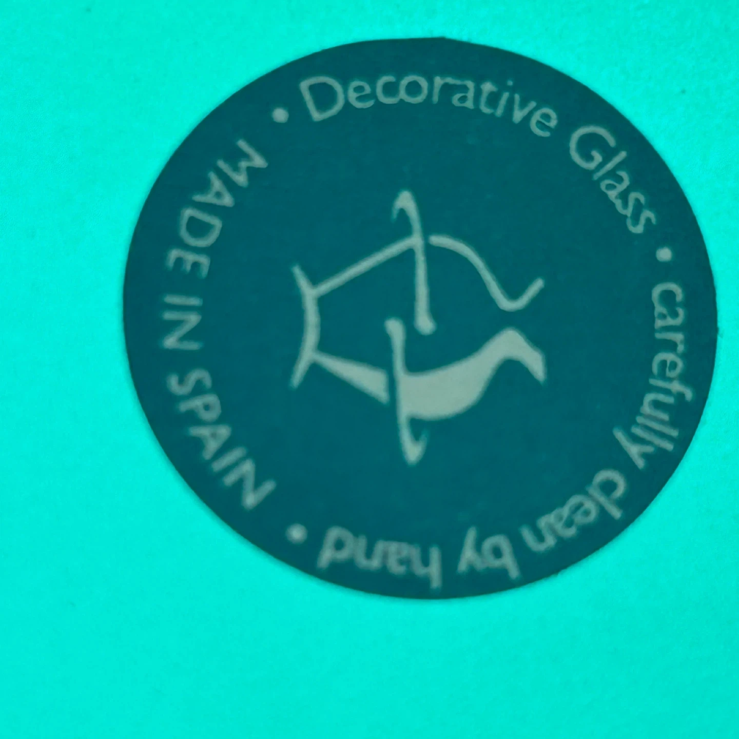 “Made in Spain – Decorative Glass – Carefully Clean by Hand.”