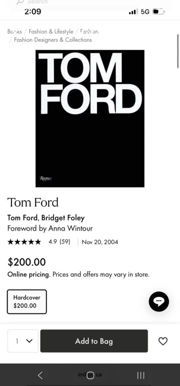 This is a Tom Ford book. It has a hardcover and is sealed in plastic. Original price was $140 USD / $185 CAN.