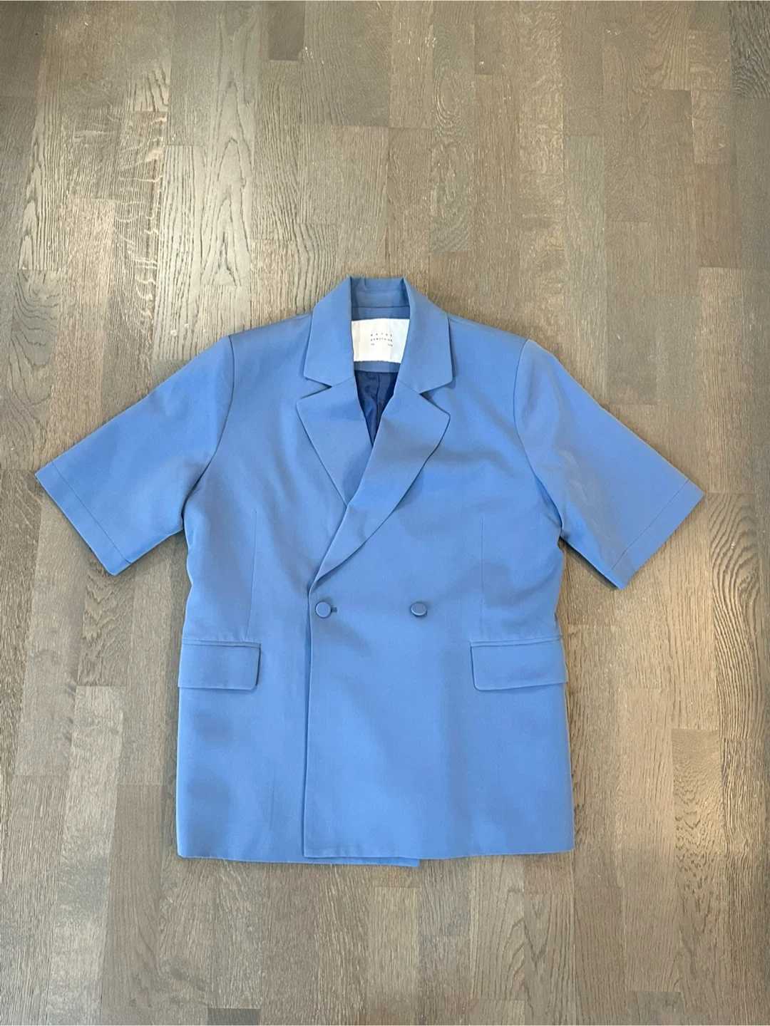 Maybe Something To You short sleeve blazer in a lovely blue color. It's a double-breasted style with two button closure. Size M (overfit), made from 100% fabric. A chic layering piece for any outfit!