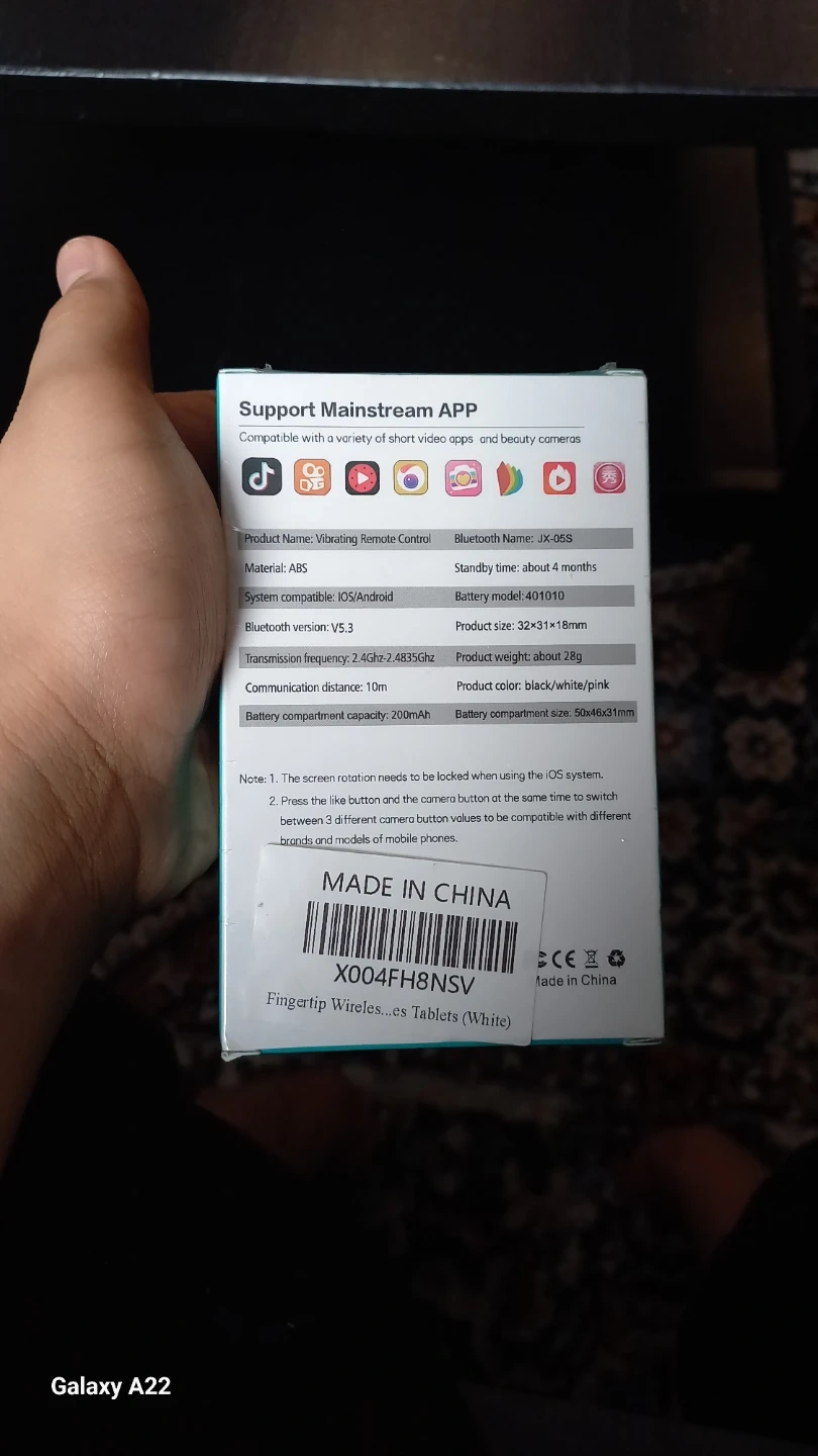 This JX-05S vibrating remote control ring supports one-key operation for videos and photos. It's compatible with iOS/Android and uses Bluetooth V5.3 for connection. The ring is made of ABS and is black/white/pink.