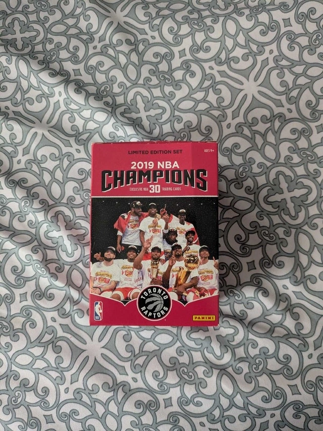 A box case set of 30 cards commemorating the historic 2019 Toronto Raptors Championship run. Perfect for any fan. In great condition, cards have been rarely touched.