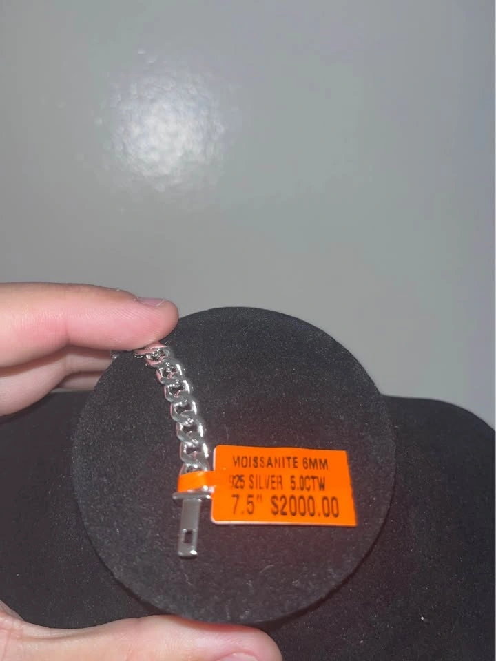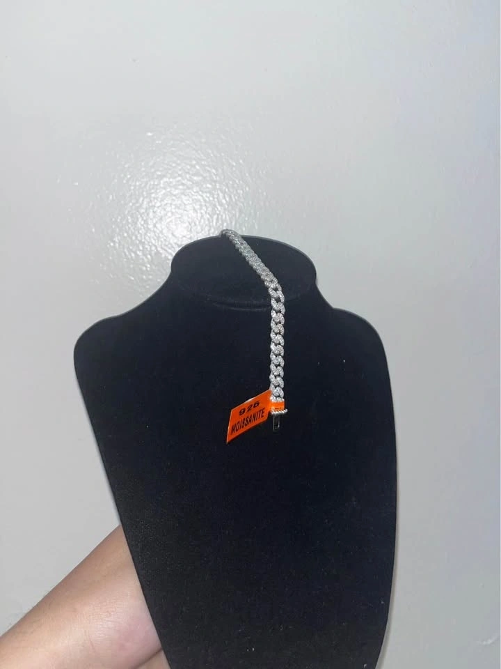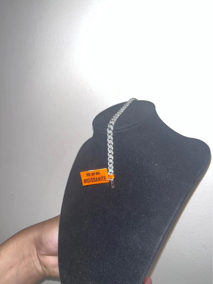 Miami Cuban bracelet, 7.5 inches long and 6mm thick. Features VVS Moissanite stones that are hand-set in solid 925 sterling silver with rhodium platinum plating. Perfect for everyday wear or special occasions. It looks luxurious, is eye-catching, and matches any outfit.