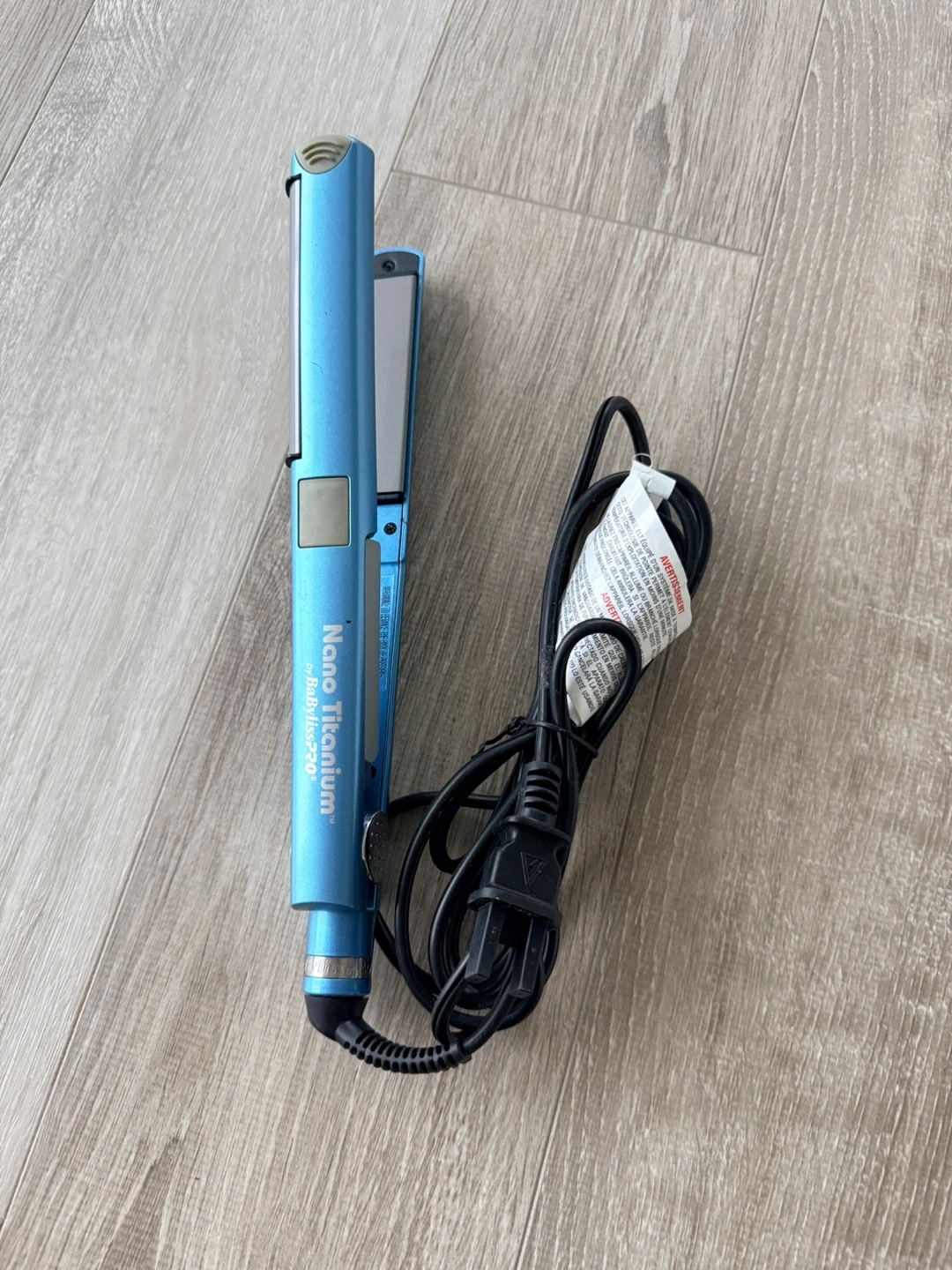 This BaBylissPRO Nano Titanium flat iron is a professional styling tool. It's designed for straightening and styling hair. There is a slight scratch on the handle due to wear and tear.