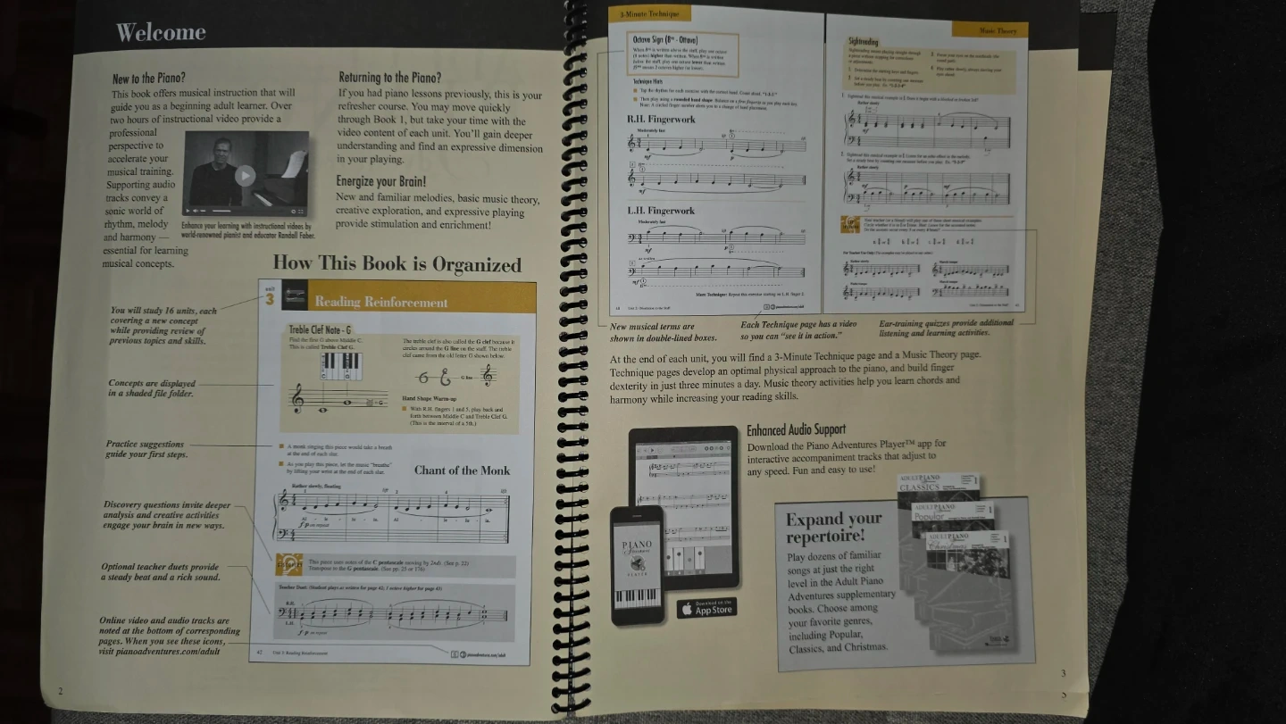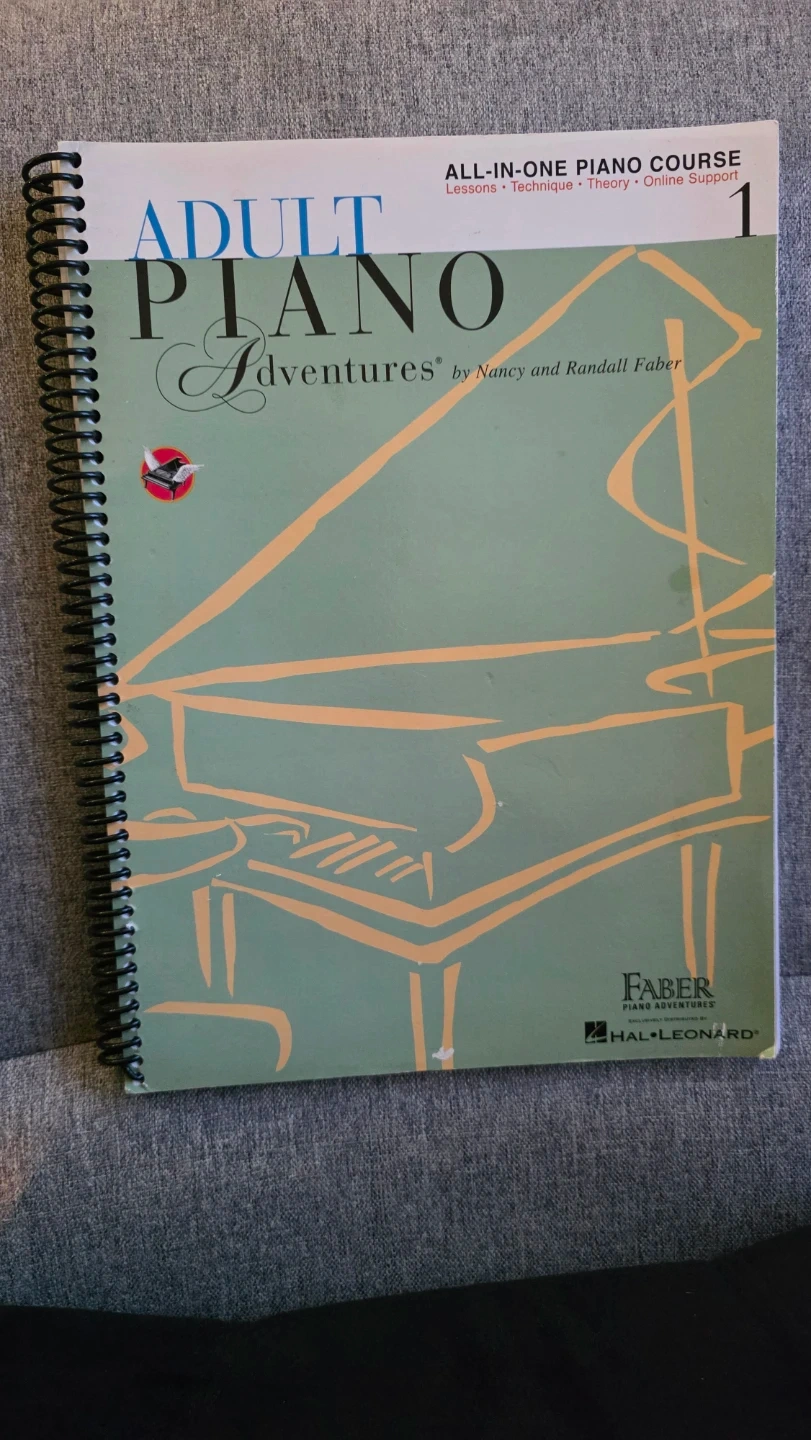 This is the Level 1 book from the Adult Piano Adventures All-in-One Piano Course. It's by Nancy and Randall Faber. The book covers lessons, technique, and theory.