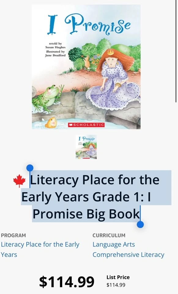Includes 1 Big Book, 3 small books, and 1 Shared Reading Teaching Plan from the Literacy Place for the Early Years series. This is a comprehensive Canadian literacy resource for Grades K-3, designed to support reading, writing, oral language, and word study. It's great for differentiated instruction and assessment. All items are brand new.