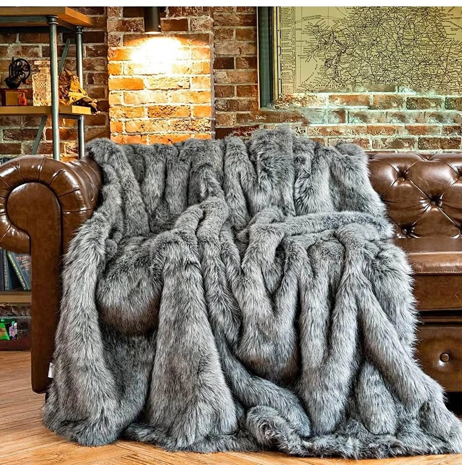 Silver Grey Faux Fur Throw Blanket for Couch, Bed, Fake Fur Blan