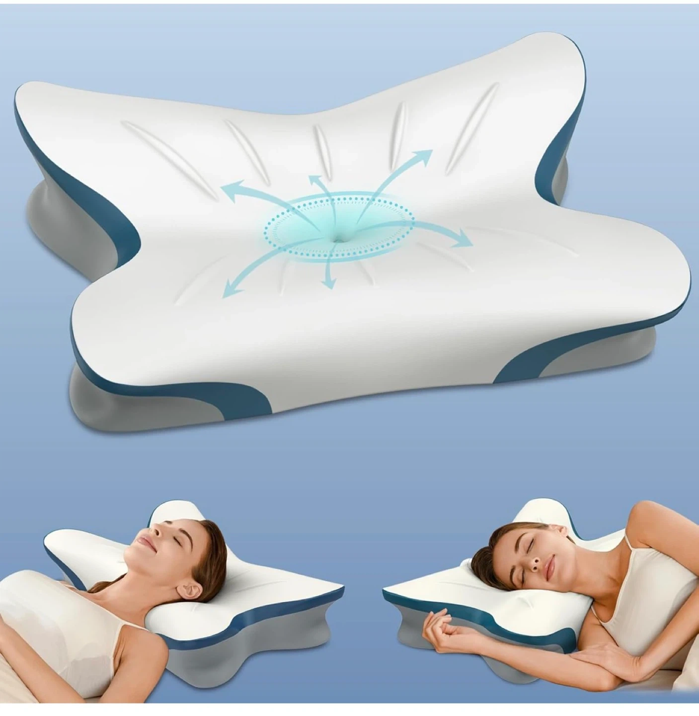 This cervical pillow is designed to support every sleeping style. It features an ergonomic butterfly shape to cradle your head and neck. The pillow's unique contouring helps maintain proper spinal alignment.