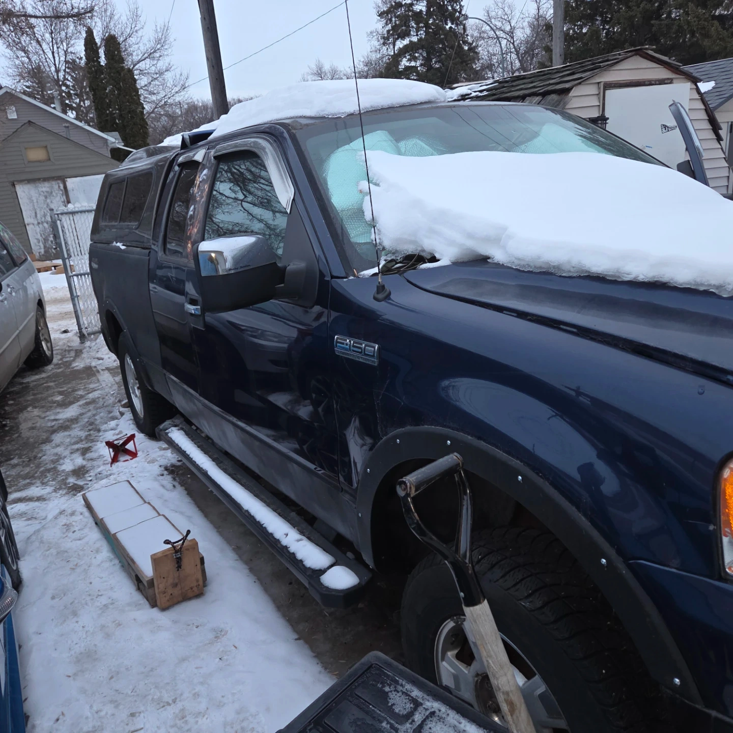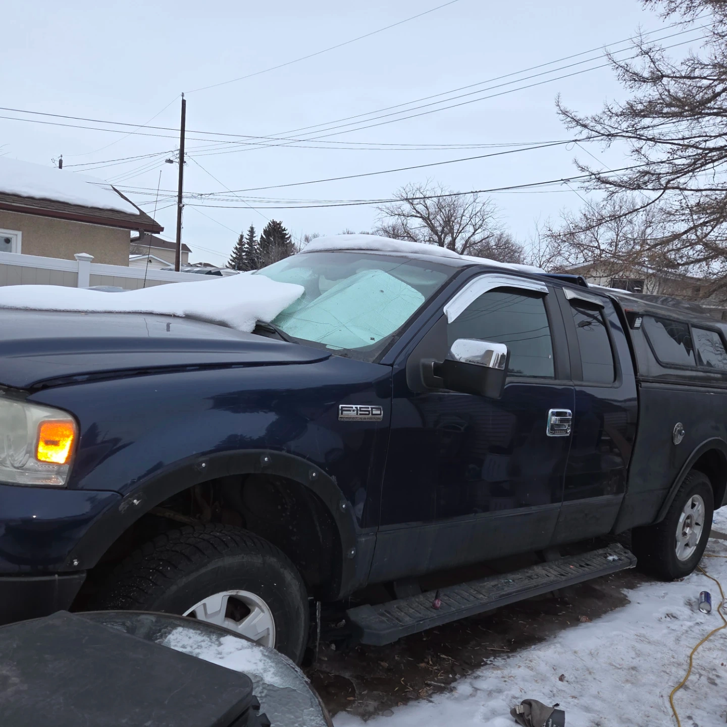 Dark blue Ford F-150 truck with a bed cap. It has custom skull and flame decals on the doors. The interior shows a digital display screen and wood trim accents.fully loaded lariat 252000km i bought this truck at the beginning of last summer with the aspirations of starting my own jack of all trades business because being on aish is non livable.upon my first job the timing went out,I have bought all brand new parts for a complete trimming job.even bought all the speciality tools,the absolute only thing left to buy is an oil pan gasket.only because I believe if youre gona be that deep into it may as well fix everything.but my rent to own landlords( I just thought they where THE LANDLORDS) SCREWED OFF IN DECEMBER,without my knowledge,I only knew something was up when I could no longer hear the 10 feral dogs.needless to say they trashed the upstairs that bad,what good about it is rhe real landlords gave me till may since there os extensive renovations.tge bad is I've frozen my hands before and won't have a chance to complete the job.ive repaired all rust and sprayed the box and lower cab with box liner for extra toughness has studded tires.knn aftermarket style filter( new)aftermarket headset unit.ive put countless hours into my truck and being on aish and what Danielle Smith is doing to the most vulnerablevof us despicable and on top of my current situation I have come to the realization that I have to try and sell it to a lucky new owner.im hoping of just breaking even on what I paid and the large investment in proper parts and tools. Not counting my extensive hours into my truck.so im asking 4000 obo.as soon as the guides broke I shut it off as to not cause any more damage.a tow or tailor will be required.i I vested all the money I saved for years so I could try to better my life. But this is the curve ball I was given instead.and since im being fully transparent here if you happen to have a garage and room available and you are the actual owner well im forcefully looking.if youre on acreage I also have a 10 by 10 fully insulated with loft shed/ tiny house.or if youre looking for a similar shed also contact me.please.i have enough tools to open a garage so if you need a handy person on the farm,acreage( getting out of city before it becomes a 15 minute prison wouldn't break my heart.thanks for reading my novel add.lol God bless