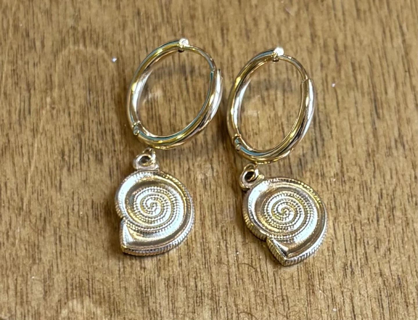 Charming gold-tone hoop earrings featuring detailed shell charm and silver tone earrings featuring a starfish. They're perfect for adding a touch of coastal flair to any outfit!