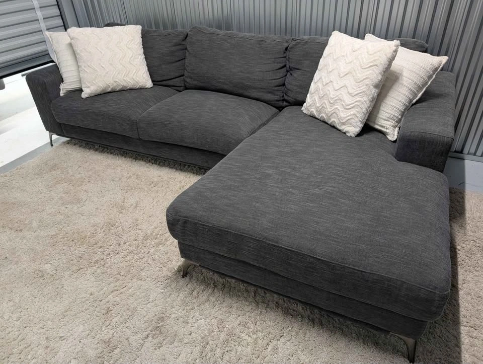 Spacious Urban Barn sectional is in excellent condition and ready for a new home. Smoke-free. Thoroughly steam cleaned. Deep, comfortable seating. Approx. 9'3" x 5'6". Clean, well cared for, and a great statement piece for a living room. Pickup in Sherwood Park. Message us to come take a look or ask any questions.