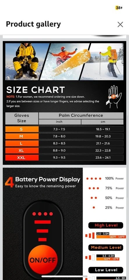 New in open box. Rated as Best Seller. Available in Black and Grey. These battery-heated gloves are great for winter work, skiing, fishing, hiking, camping, and for those with Raynaud's. They are touchscreen compatible and water-resistant.