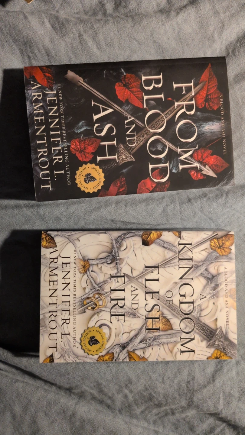 These are two fantasy novels from Jennifer L. Armentrout's Blood and Ash series. Both books are paperback editions. They're thrilling reads for fans of the genre. They are in great condition.