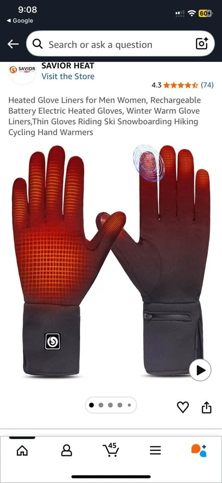 Size XL and XXL. Rechargeable battery electric heated gloves, winter warm glove liners, thin gloves for riding, ski, snowboarding, hiking, cycling. Hand warmers for driving and typing.
