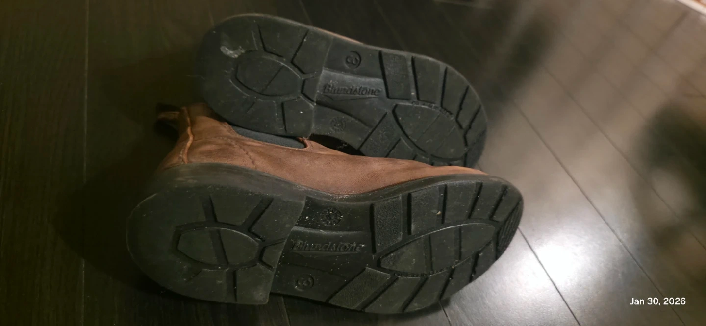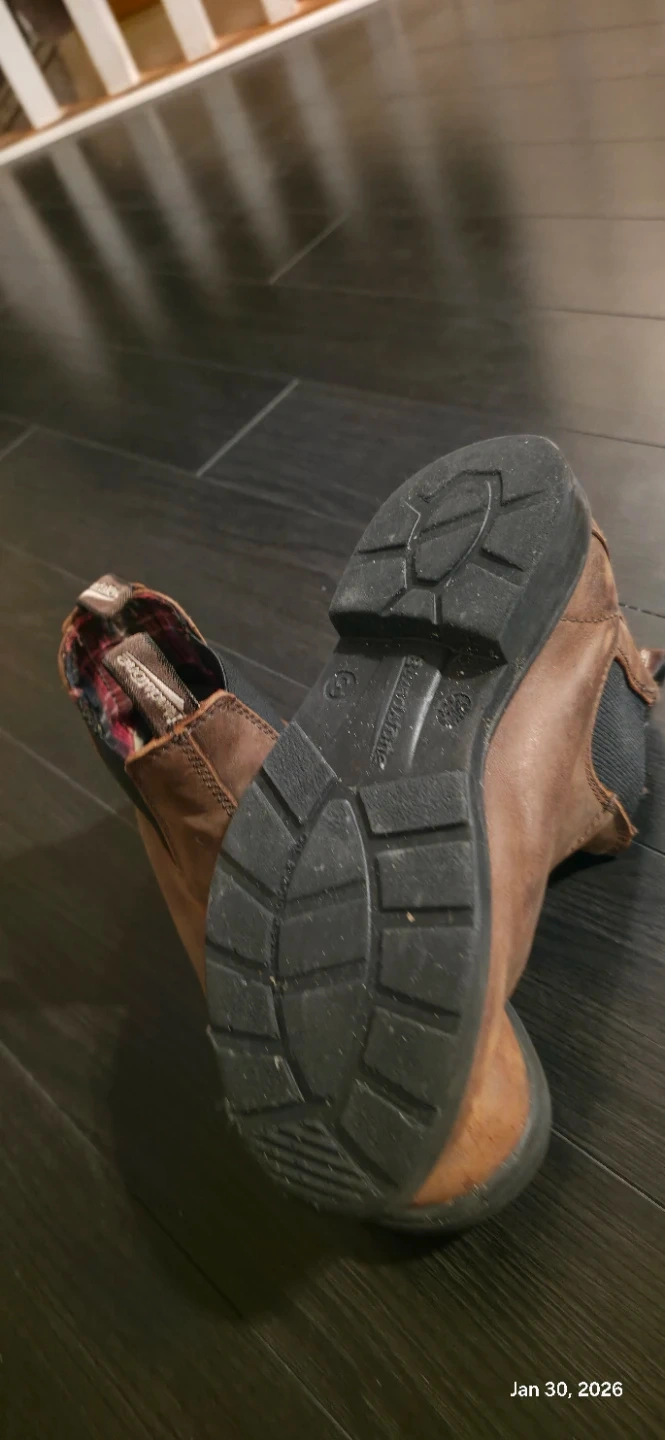 Classic Blundstone Chelsea boots in brown leather. These slip-on boots feature elastic side panels for easy wear. Durable rubber sole.