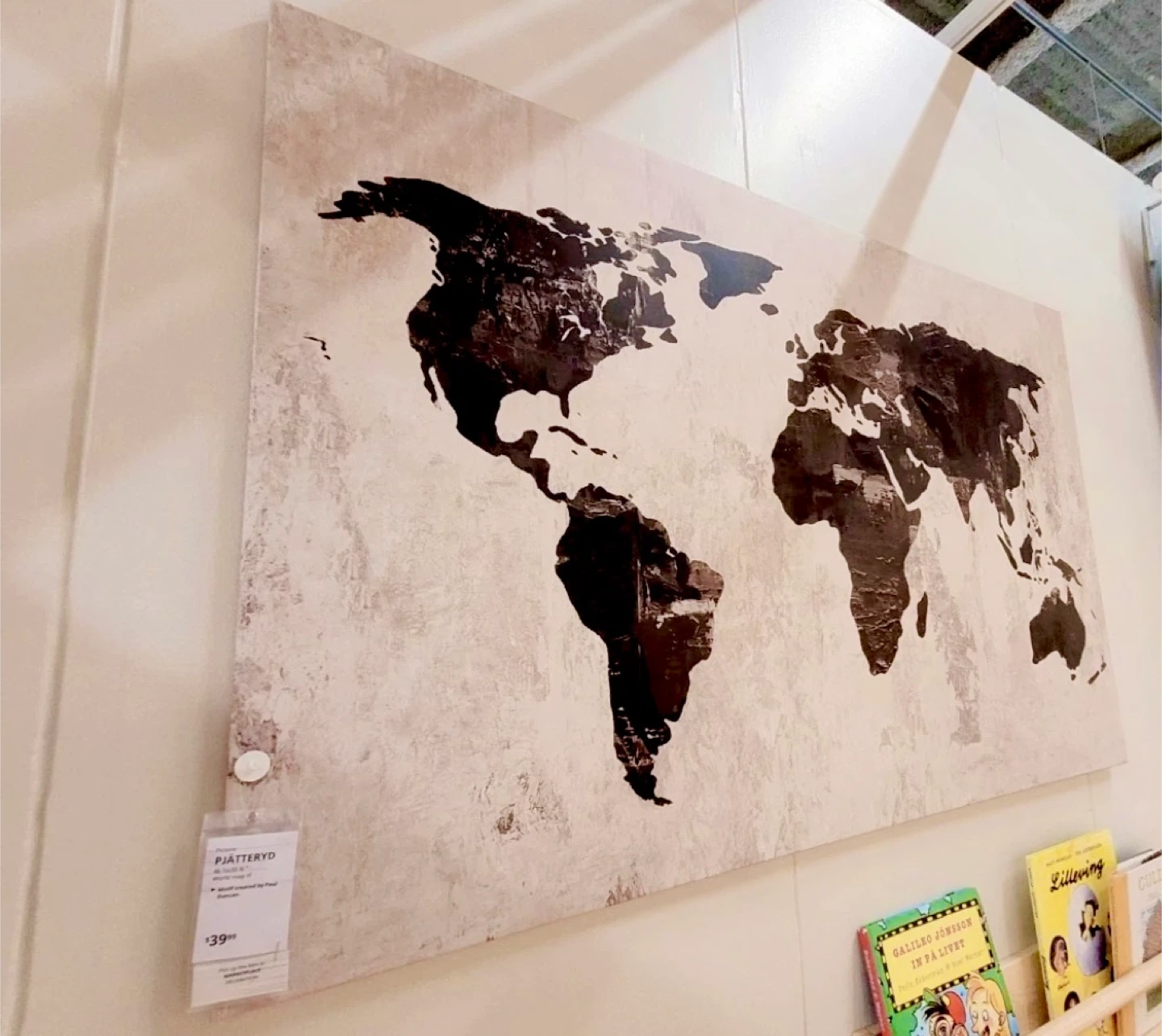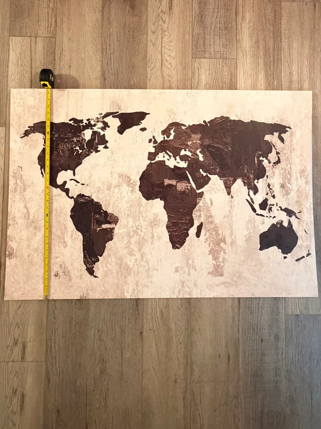 This world map decorative painting adopts a retro style design. With a light beige background and a dark brown map, it is simple yet artistic.